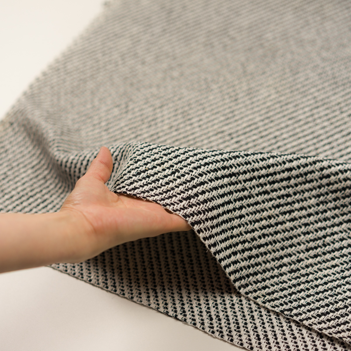 ・ふっくらボリュームある不織布、モコモコとした壁糸、キラリと光るメタルヤーンなど、意匠糸を組み合わせて織られた、ファンシーツイード