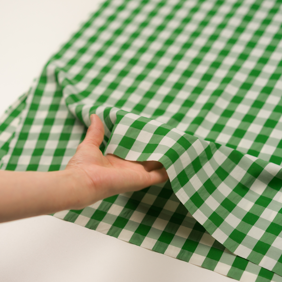 【アウトレット】ナイロン&コットン×チェック(グリーン&ミルク)×デシンワッシャー