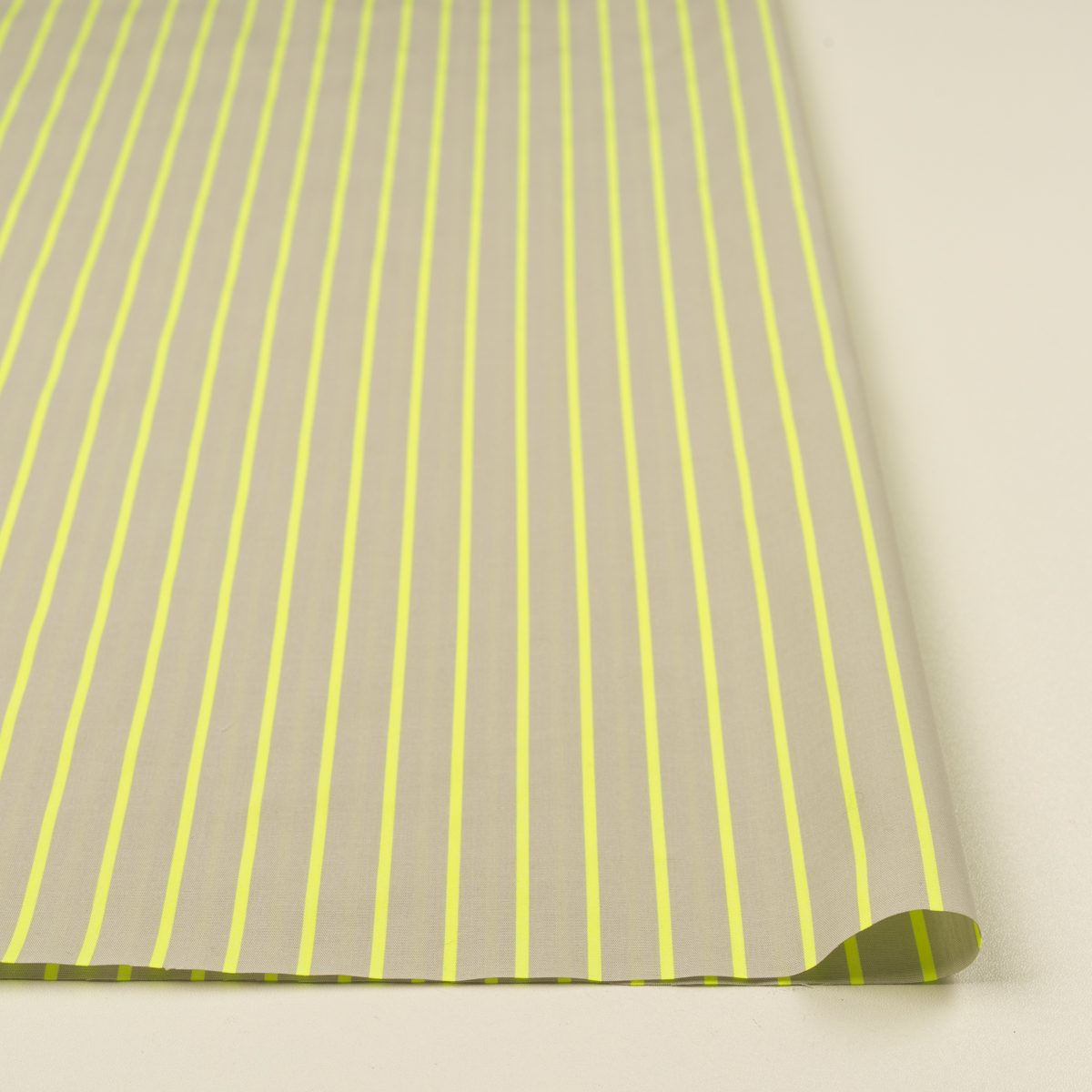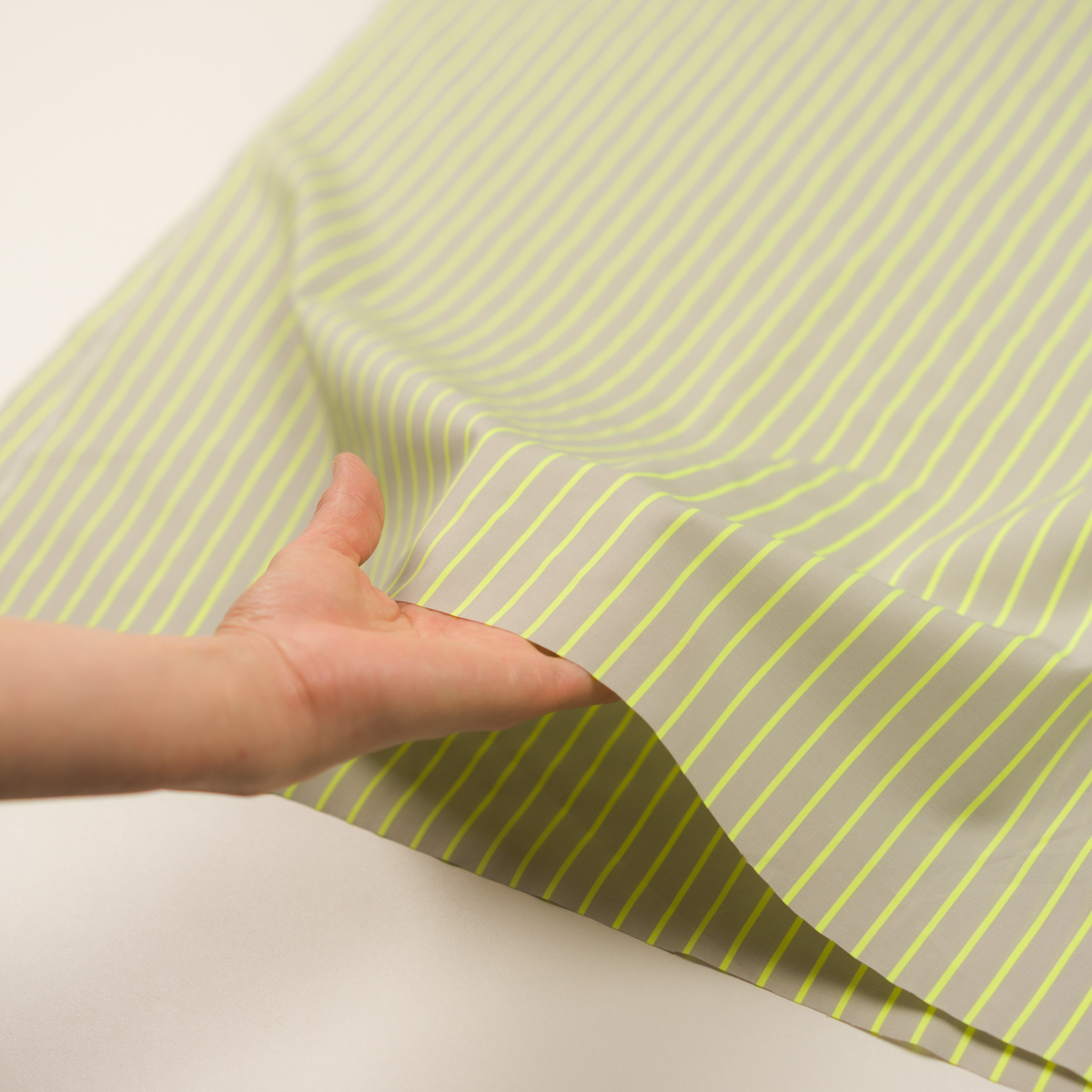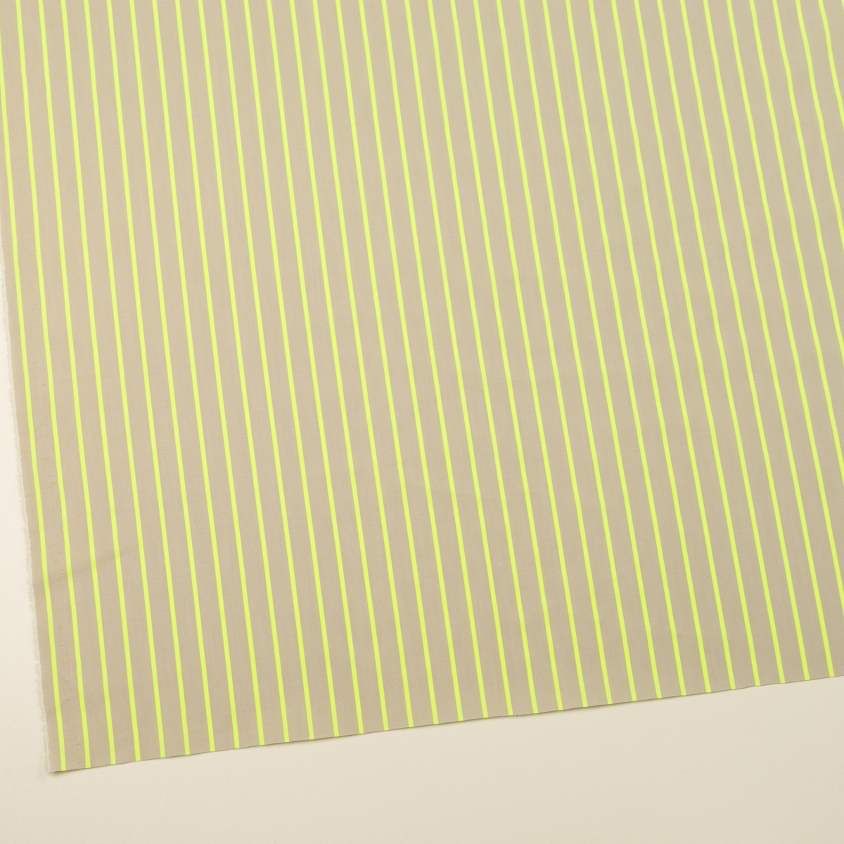 【アウトレット】コットン&ポリエステル×ストライプ(オイスターグレー&ネオンイエロー)×ブロード