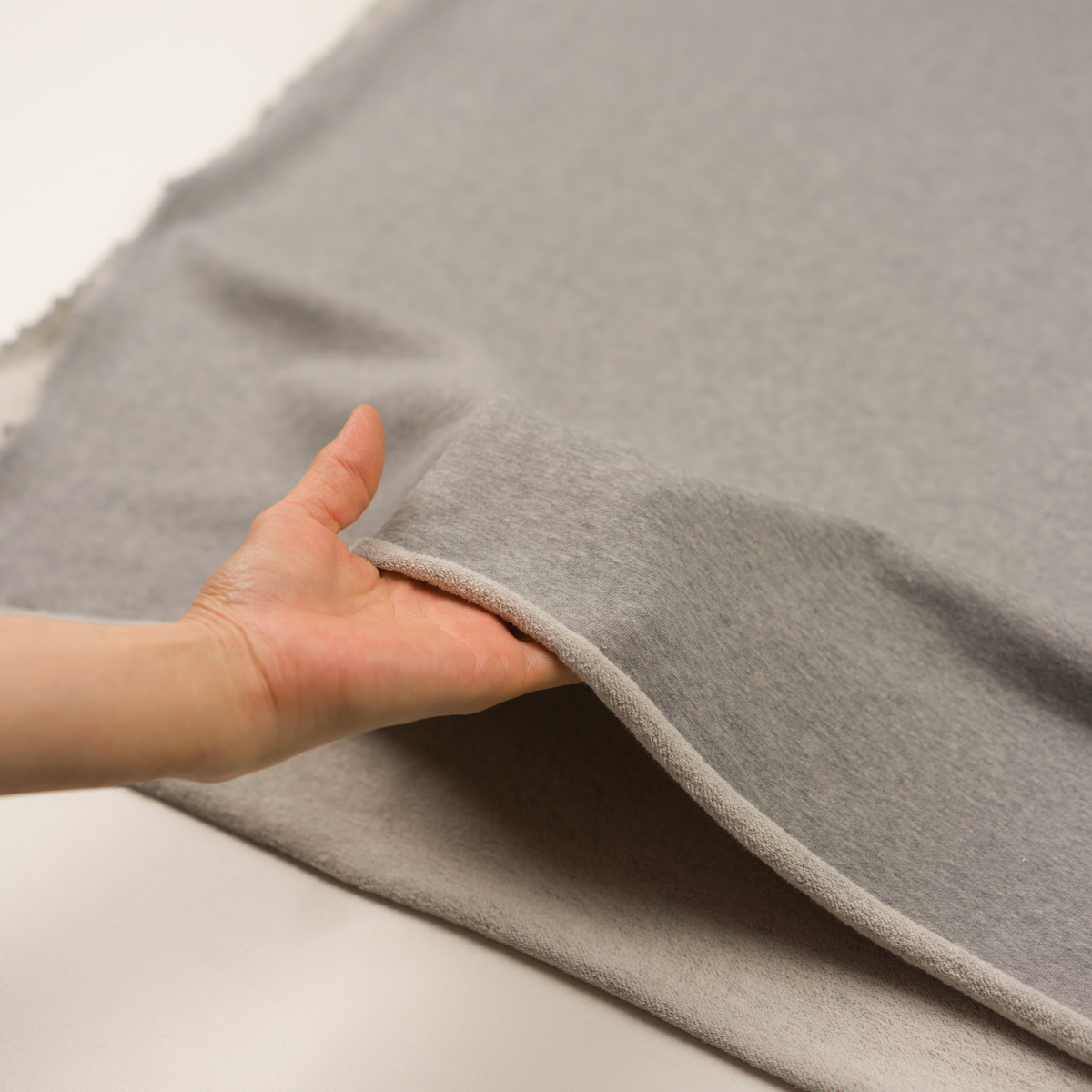 ・しっとりやわらかな手触りと風合い、細かなショートパイルの裏面