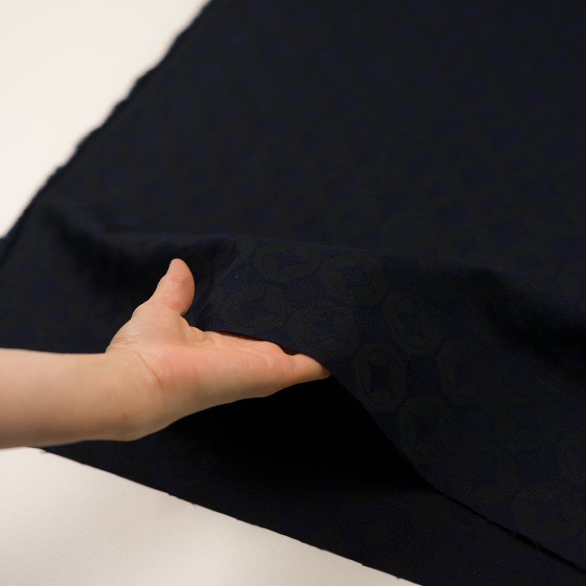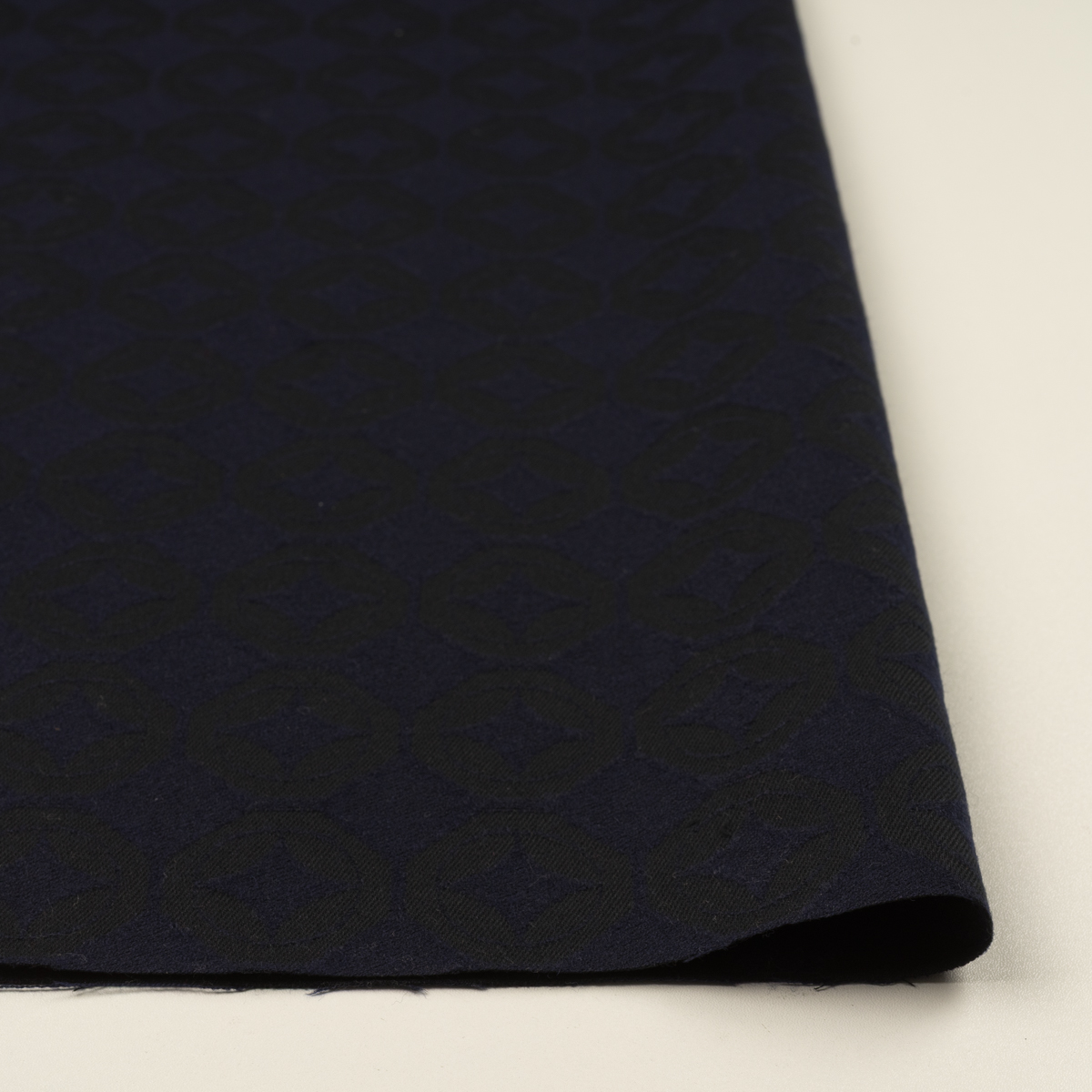 【アウトレット】ウール&コットン×幾何学模様(ネイビー&チャコール)×ジャガード
