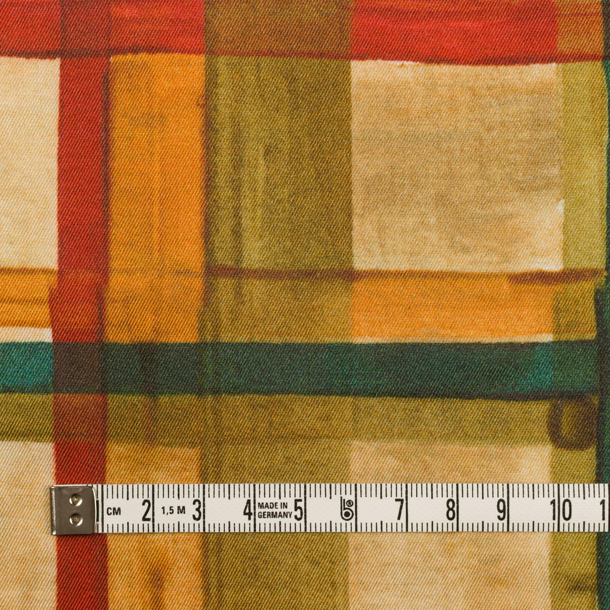 ・細かな綾織目のポリエステルサージに、幾何学模様のプリント