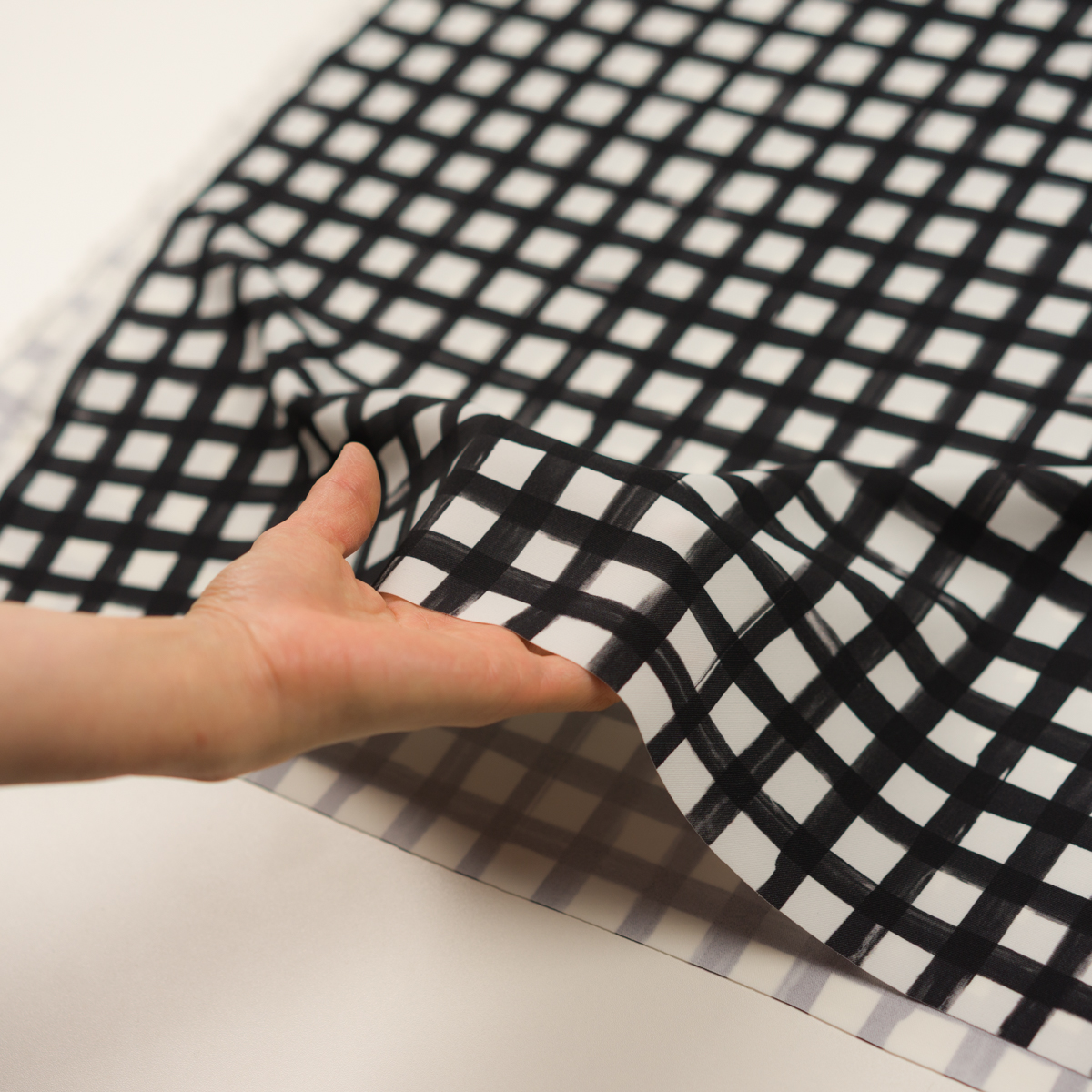 【アウトレット】ポリエステル×チェック(ブラック&オフホワイト)×サージストレッチ