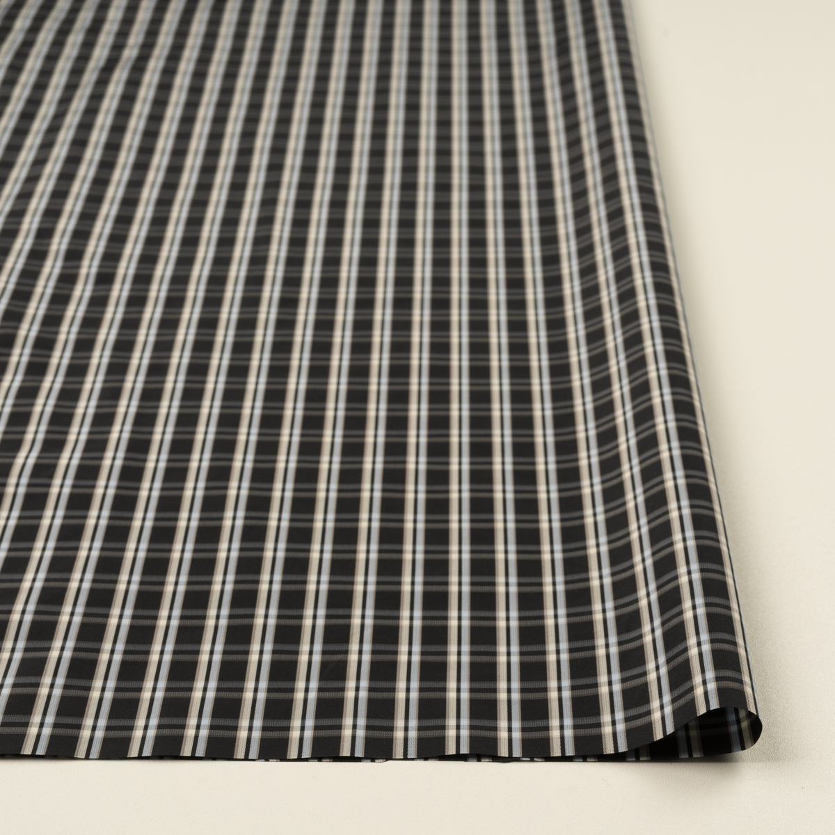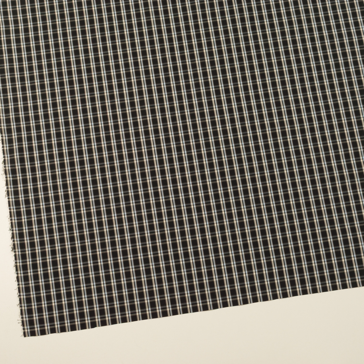 【アウトレット】ポリエステル×チェック(ブラック、オイスター&ライトブルー)×タフタ