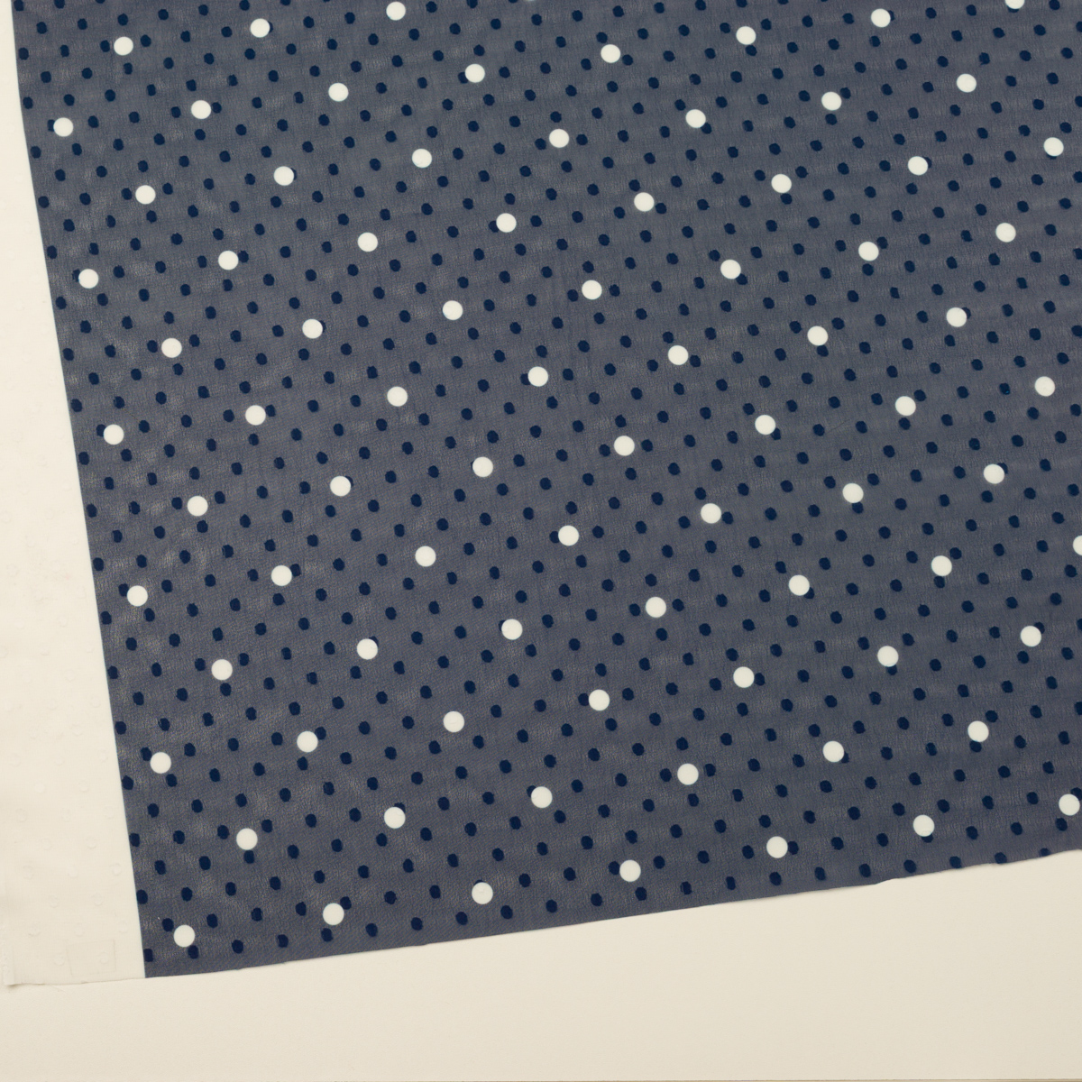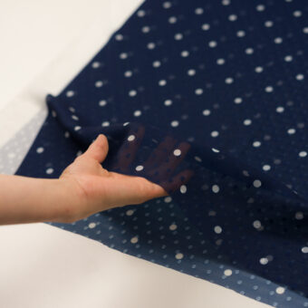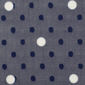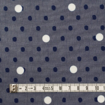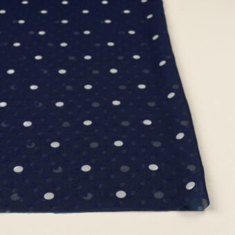 【アウトレット】ポリエステル×ドット(プルシアンブルー&ホワイト)×シフォンジョーゼット・カットドビー