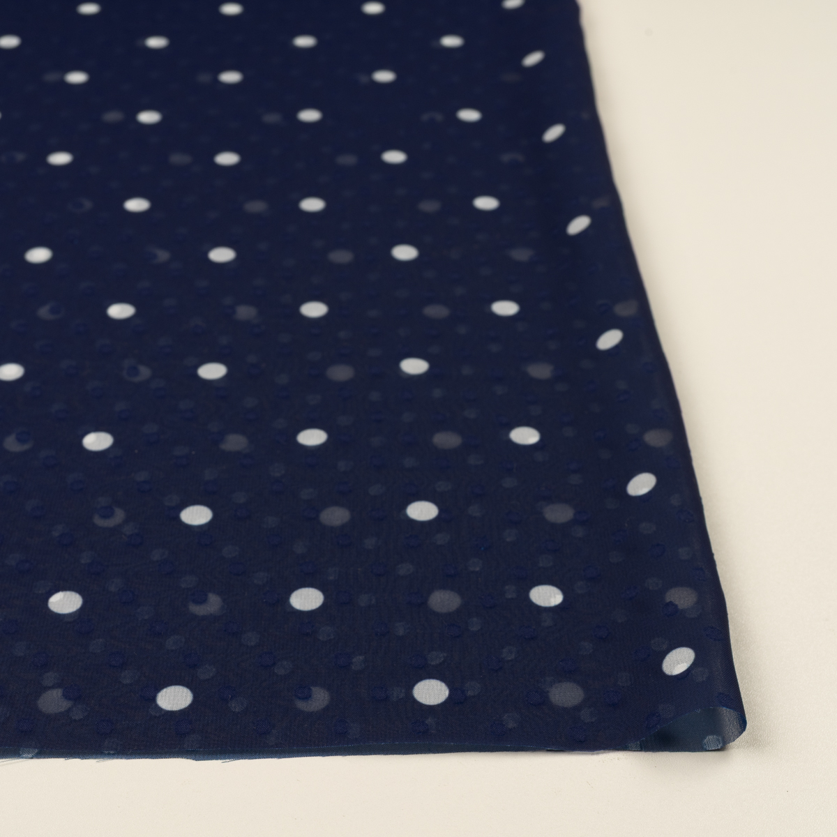 ・カットドビーが織り込まれたシフォンジョーゼット地に、ドットプリント
