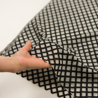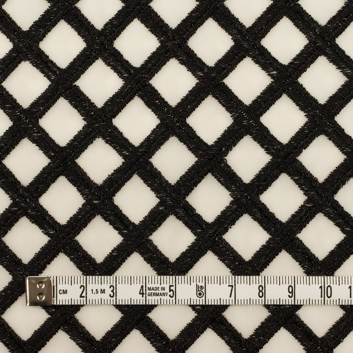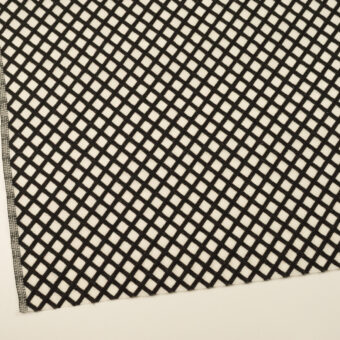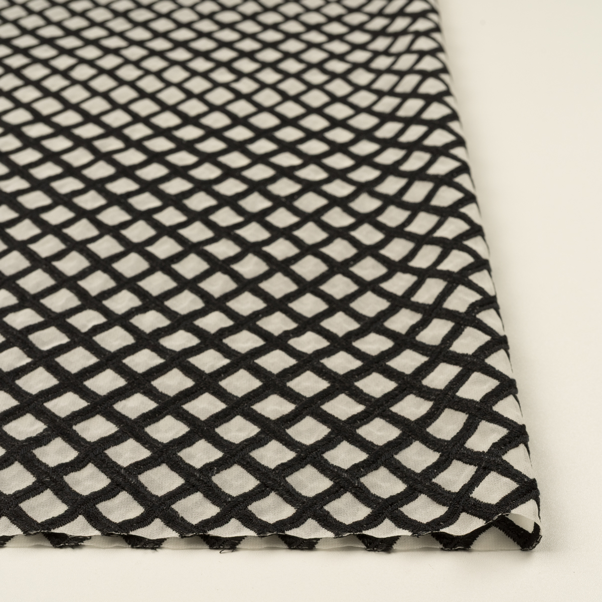 【アウトレット】ポリエステル×ダイアゴナル・チェック(クリーム&ブラック)×シフォン刺繍