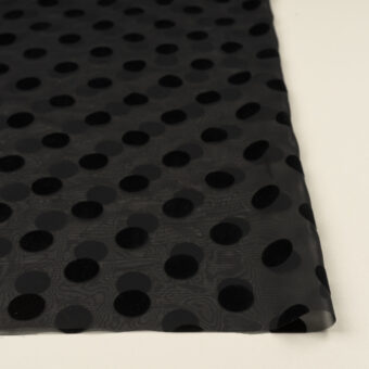 【アウトレット】ポリエステル×ドット(ブラック)×シフォン_フロッキー