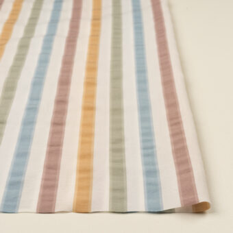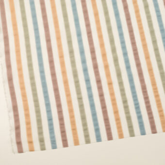 【アウトレット】コットン&レーヨン×ストライプ(オフホワイト、カーキ&アッシュブルー)×ローンワッシャー