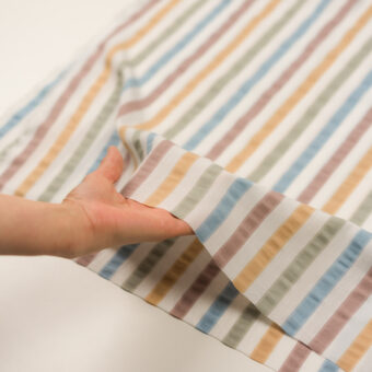 ・コットン&レーヨンのローン地に、約15mm幅のストライププリント