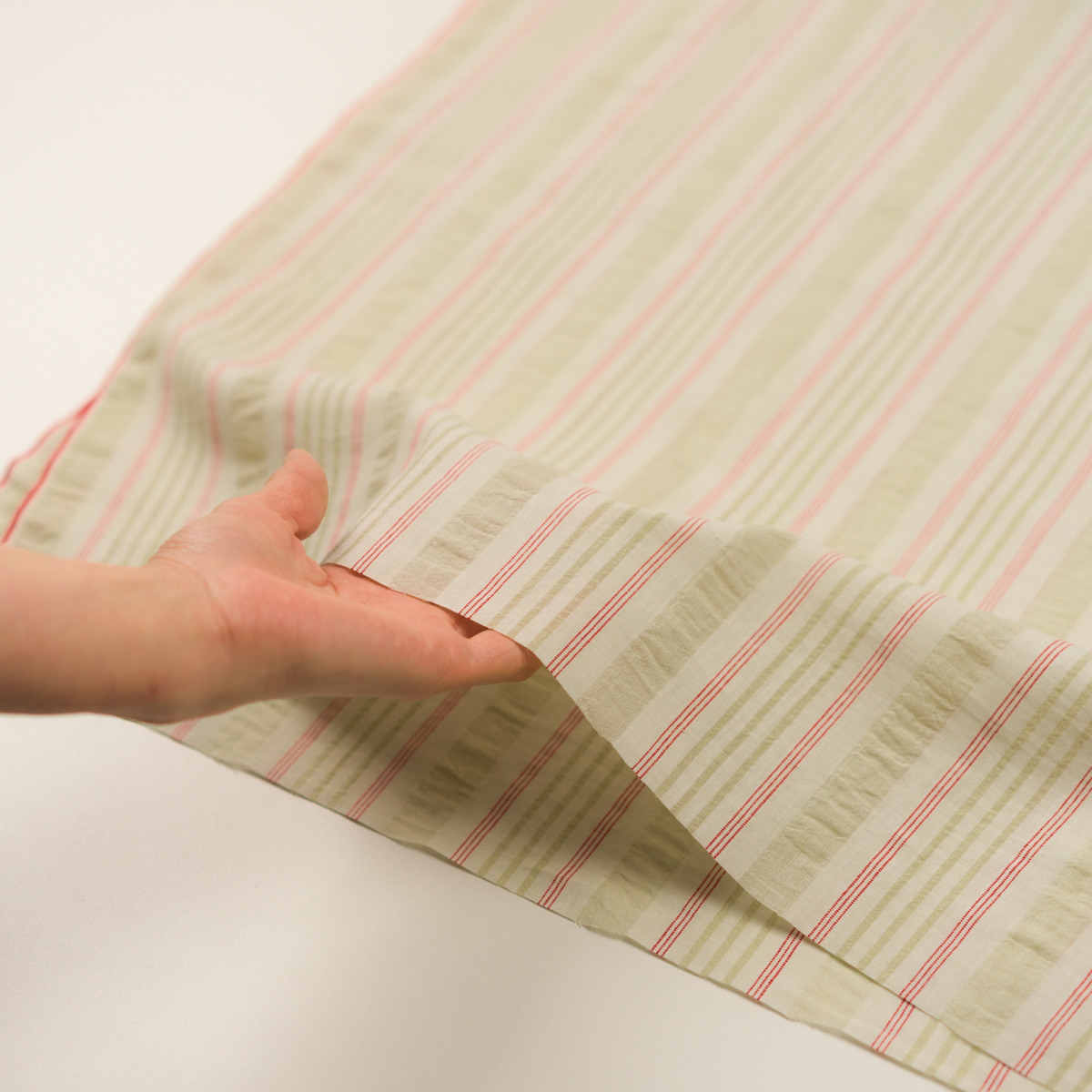 【アウトレット】コットン×ストライプ(サンドベージュ&レッド)×シーチングドビー