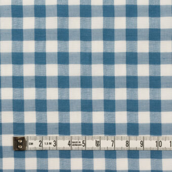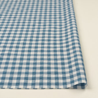 【アウトレット】ポリエステル×チェック(アッシュブルー&オフホワイト)×ローンサッカー