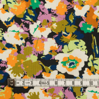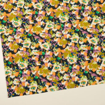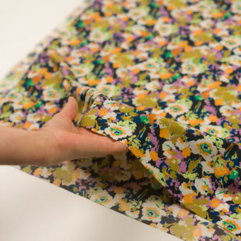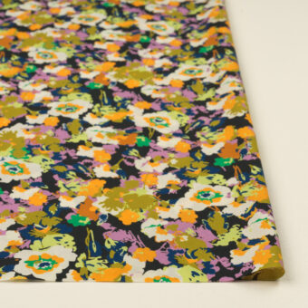 【アウトレット】ポリエステル×フラワー(ダークネイビー、オレンジ&モーブ)×デシン