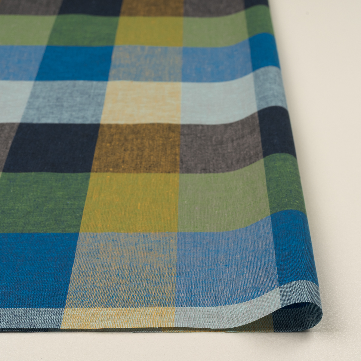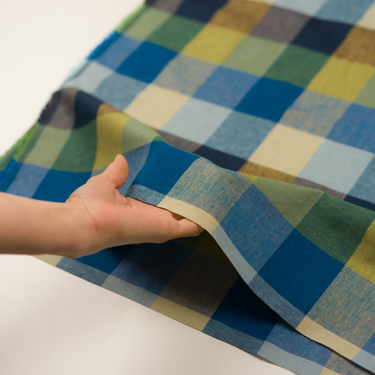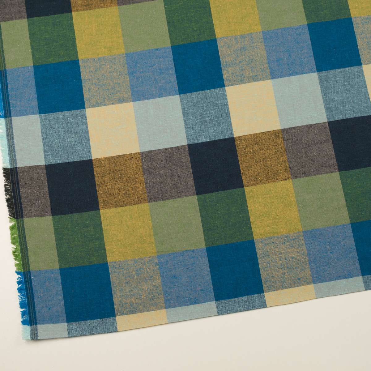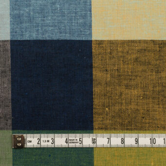 【アウトレット】リネン&コットン×チェック(ネイビー、マスタード&モスグリーン)×シーチング