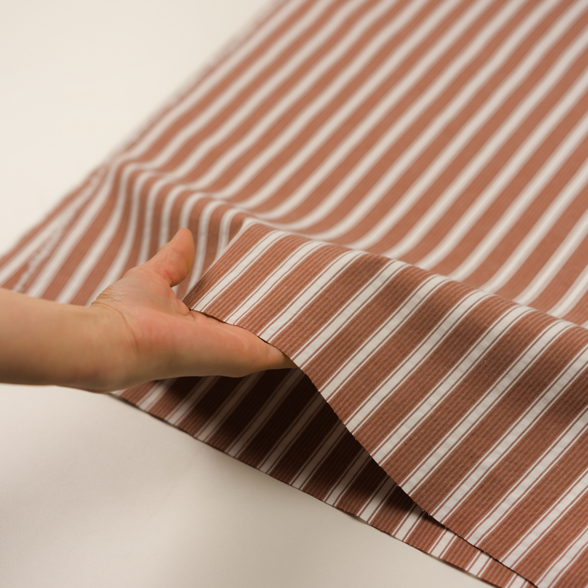 【アウトレット】コットン&ポリウレタン×ストライプ(ココア&オフホワイト)×サッカーストレッチ