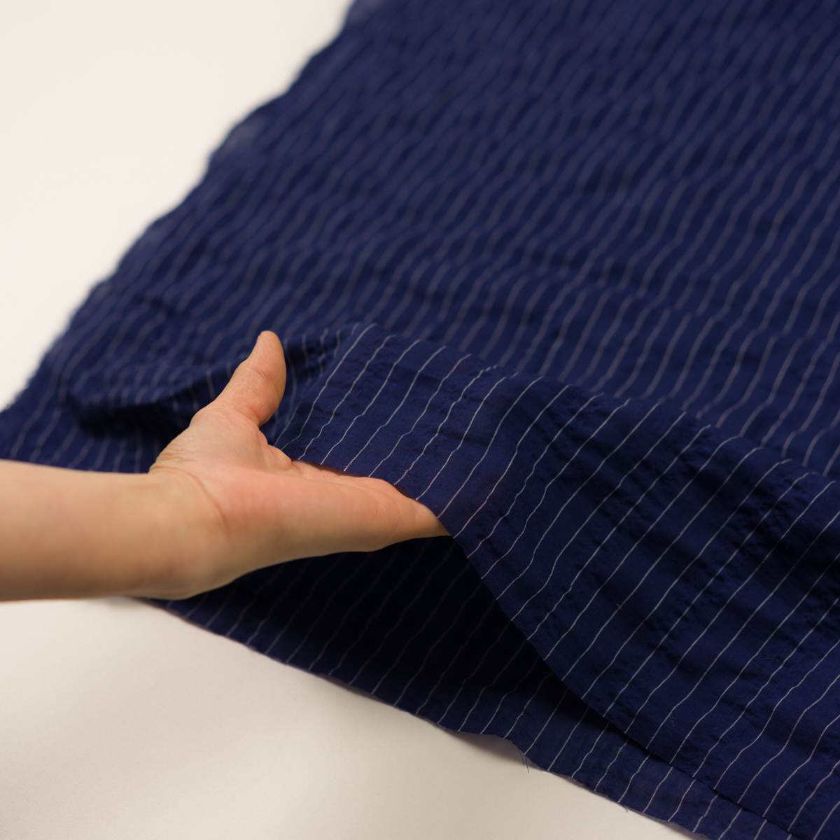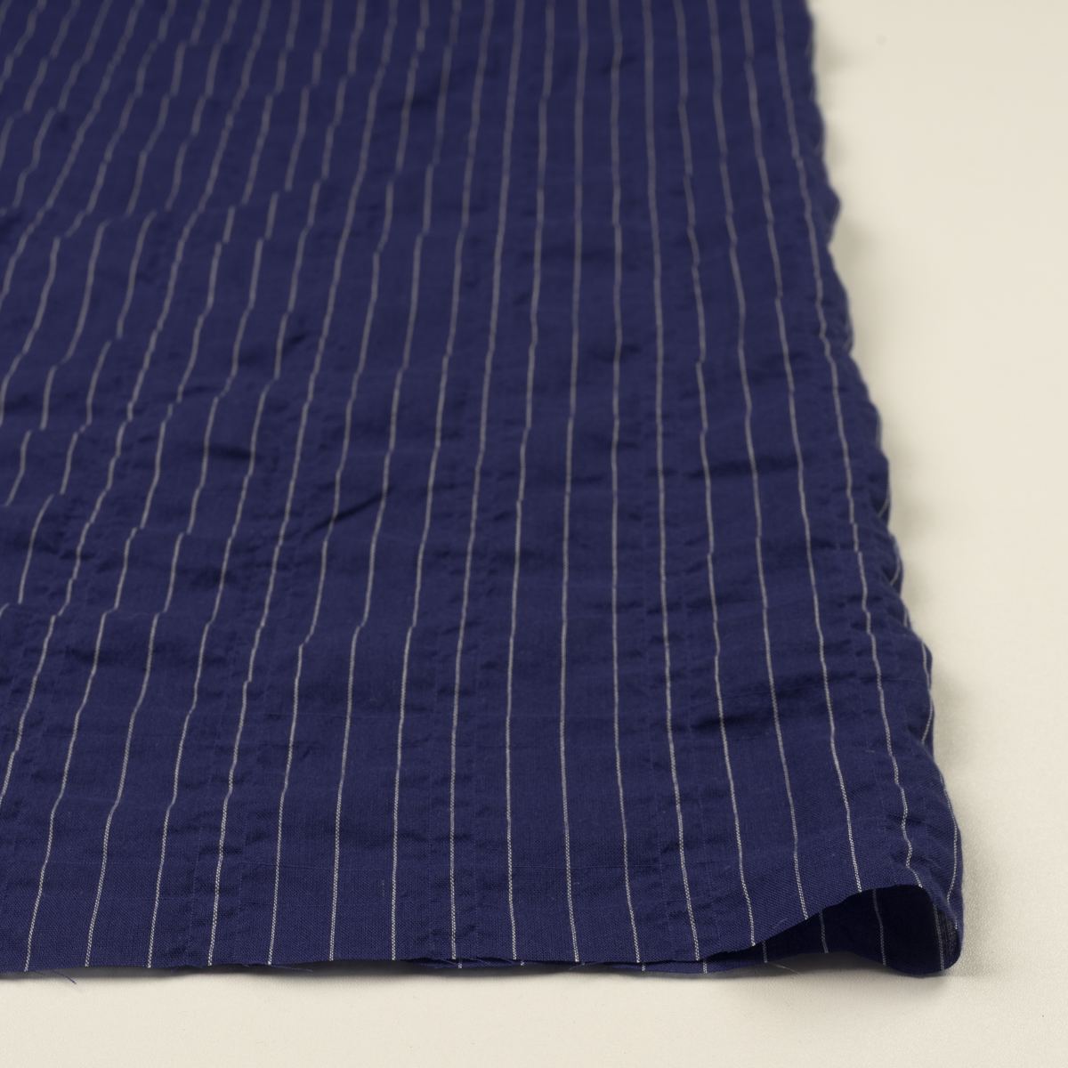 ・約10mm送りのストライプローン地に、縦縞状のポコポコと立体的なシャーリング
