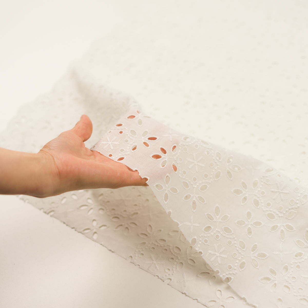 【アウトレット】コットン&ポリエステル×フラワー(オフホワイト)×ローン刺繍