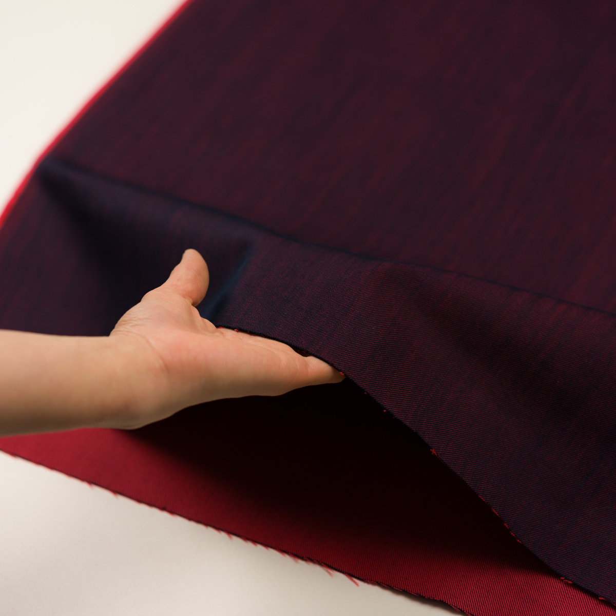 ・経糸はダークネイビー、緯糸はレッドで織られた、9オンスのカラーデニム
