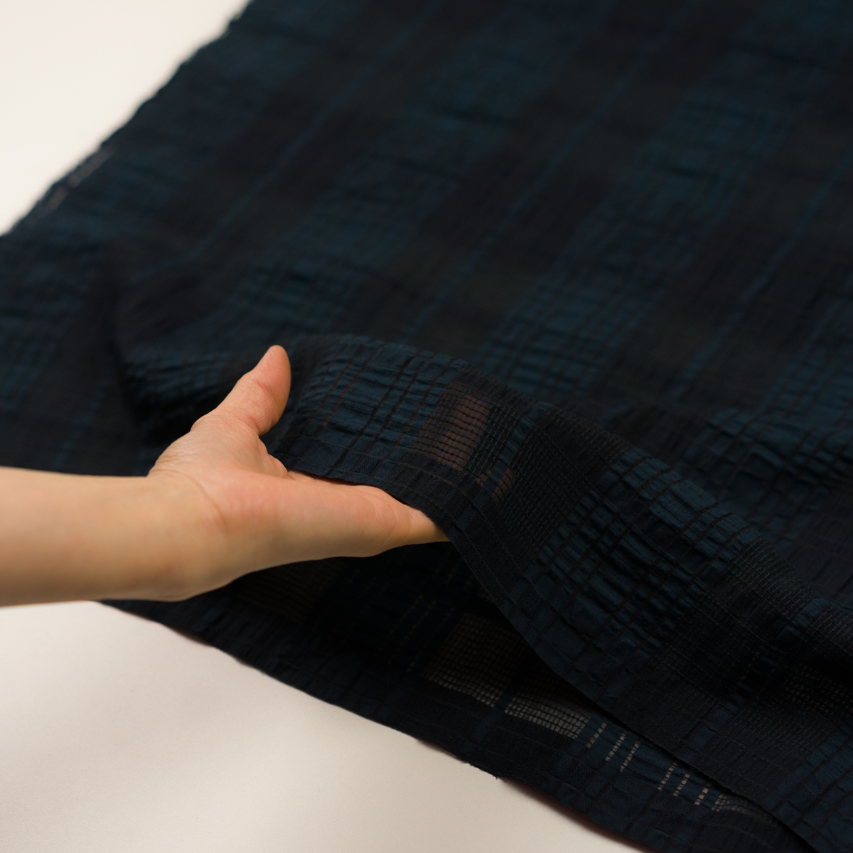 ・透明感あるオーガンジー地に、タテ15.8cm×ヨコ13.8cm送りのチェックドビー織