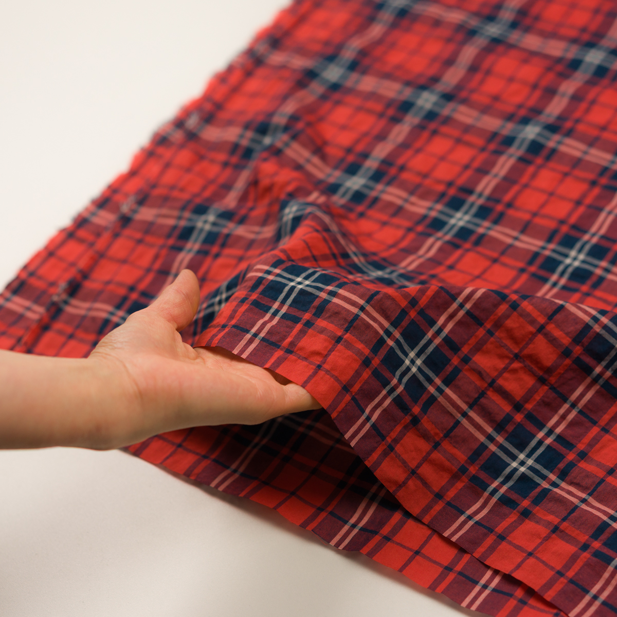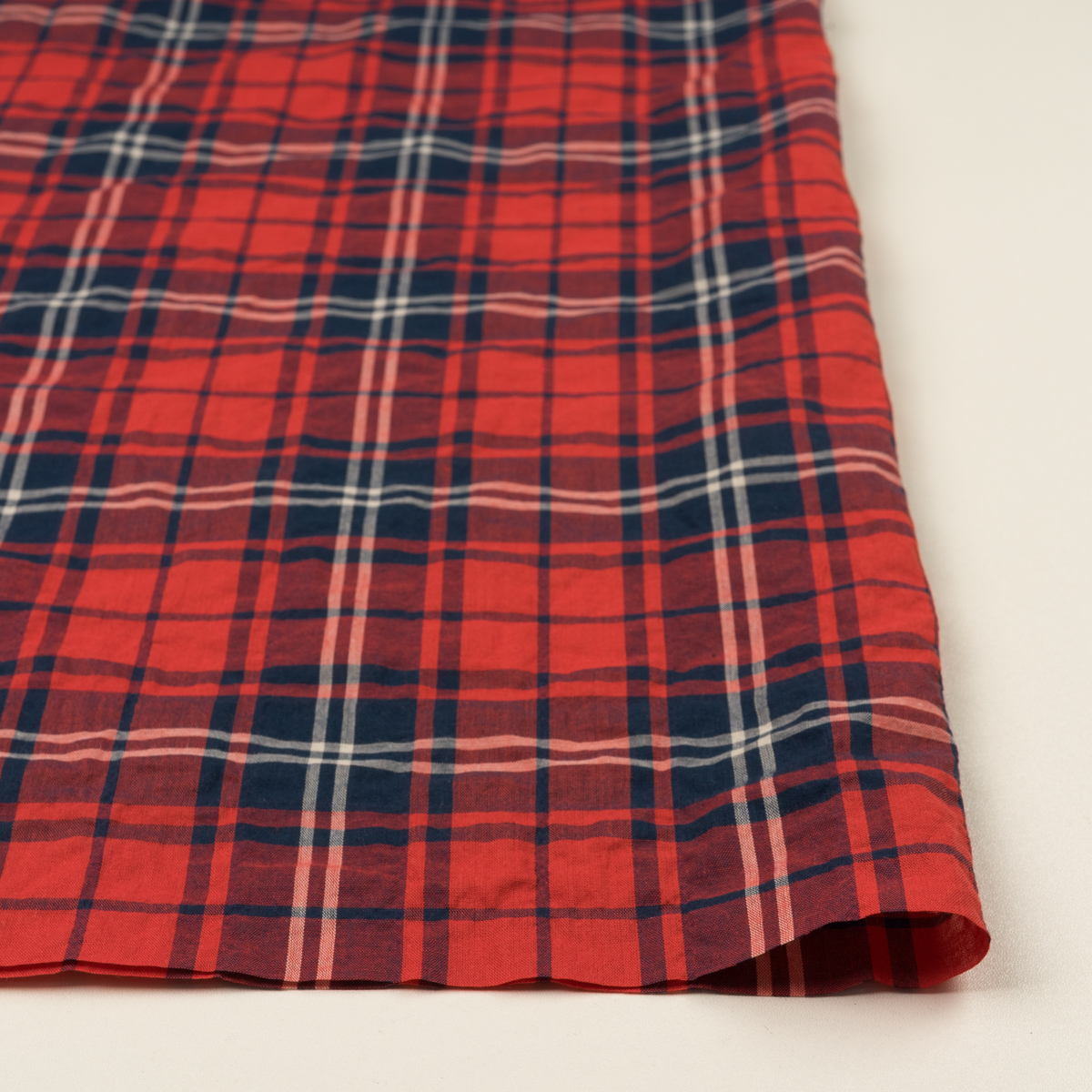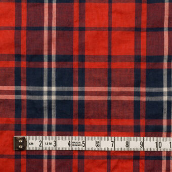 コットン&ポリウレタン×チェック(レッド&ネイビー)×ローンシャーリング