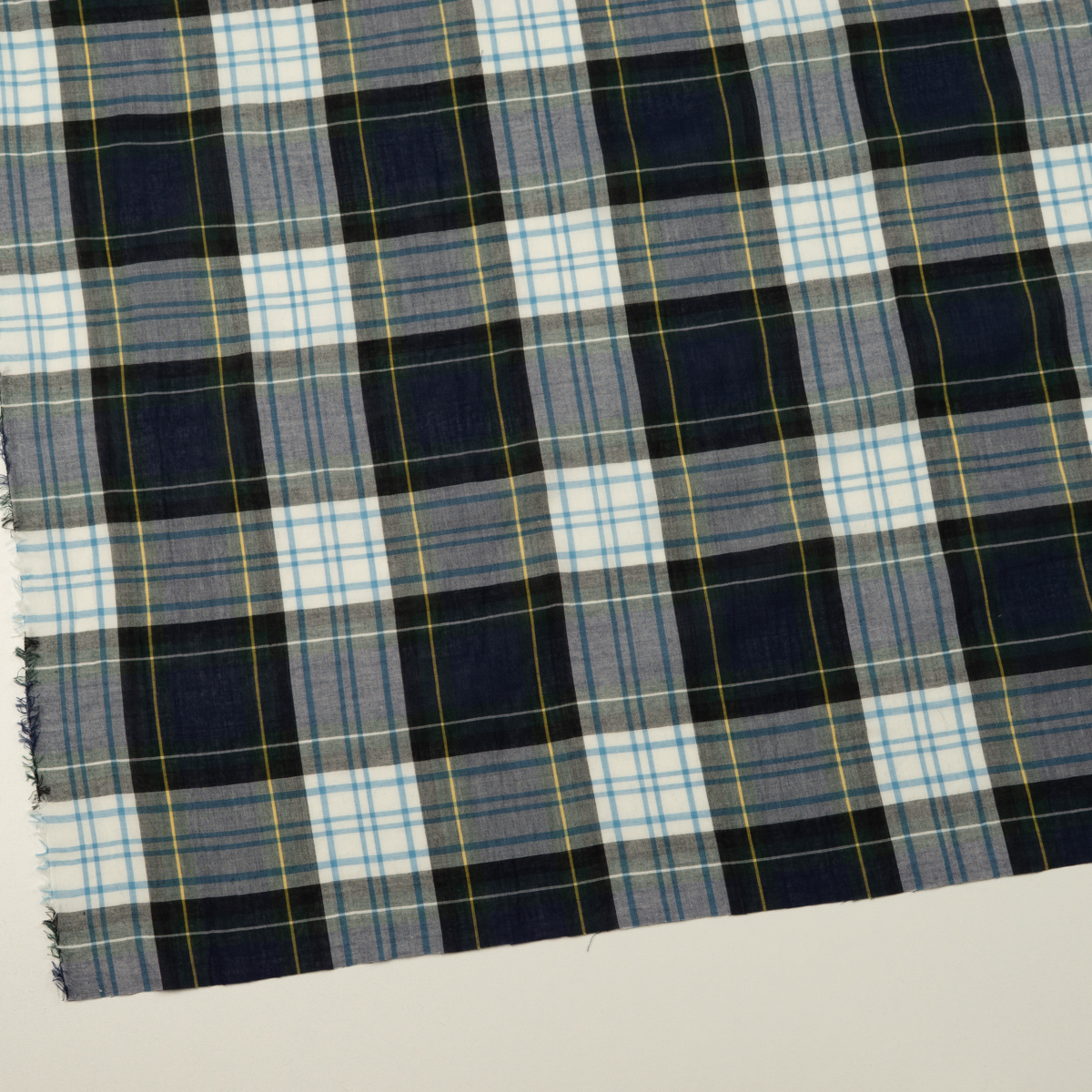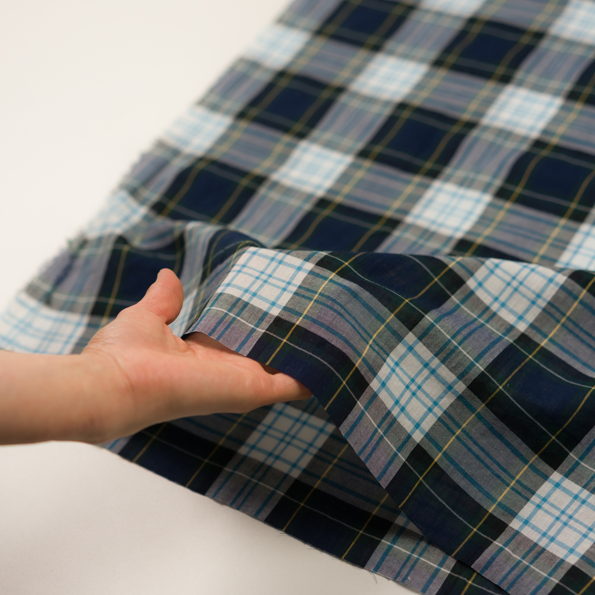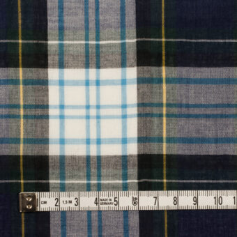 コットン×チェック(ネイビー、クロムグリーン&サックス)×ローンワッシャー