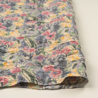 【アウトレット】コットン&ポリエステル×ボタニカル(カスタード、レッド&ウィステリア)×ポプリンワッシャー