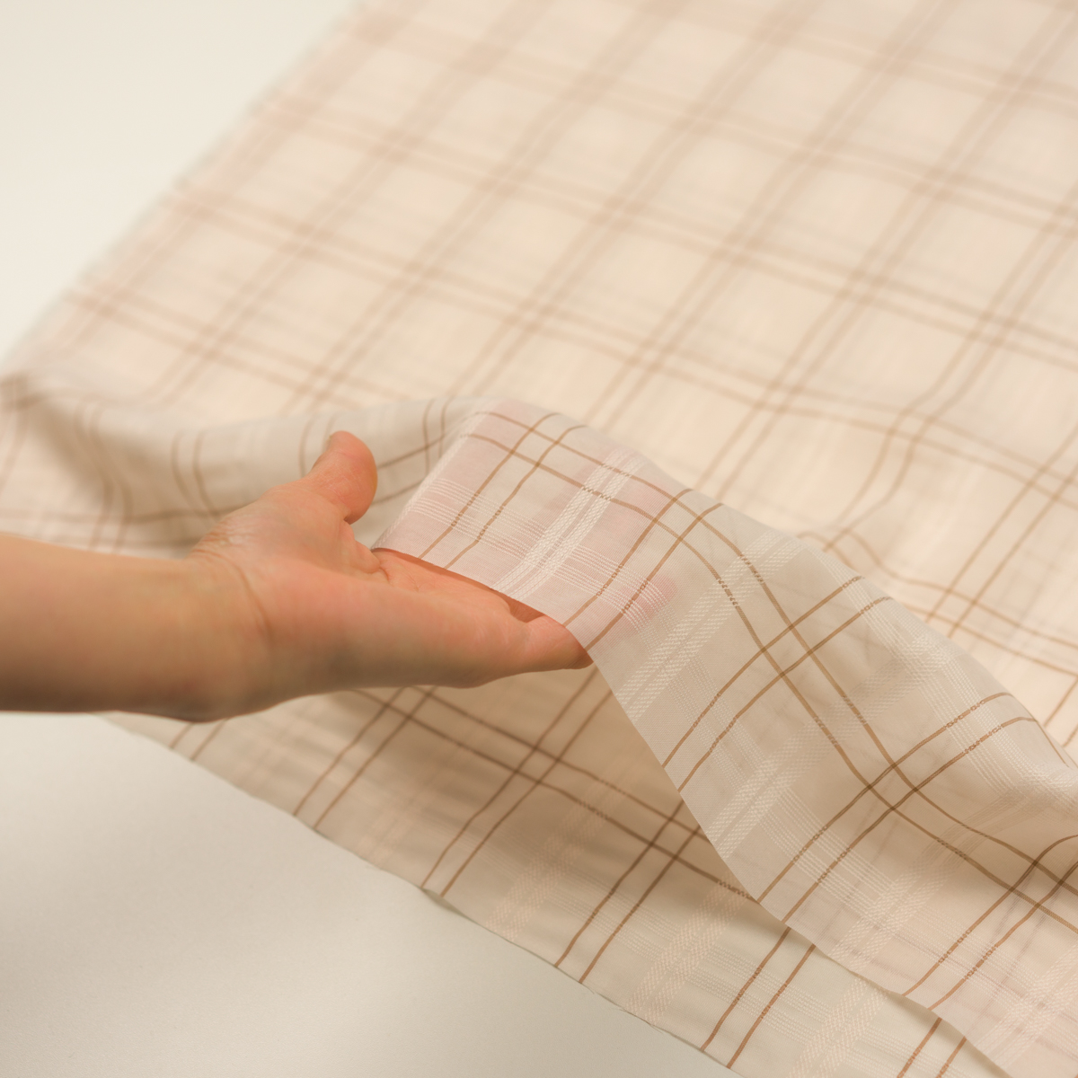 【アウトレット】ポリエステル×チェック(ウォームベージュ&ブラウン)×シフォンドビー
