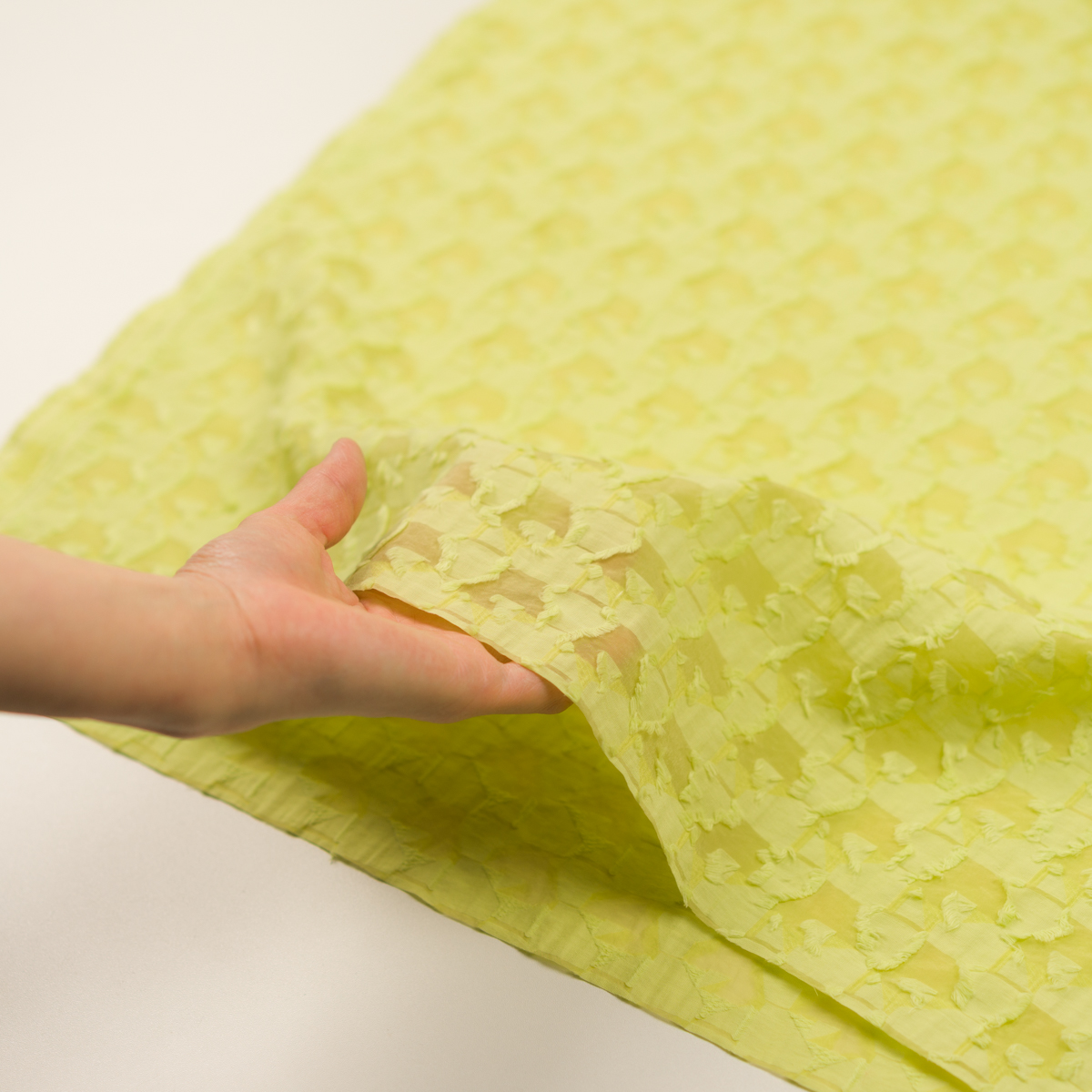 【アウトレット】コットン&ナイロン×幾何学模様(ネオンイエロー)×オーガンジー・カットジャガード