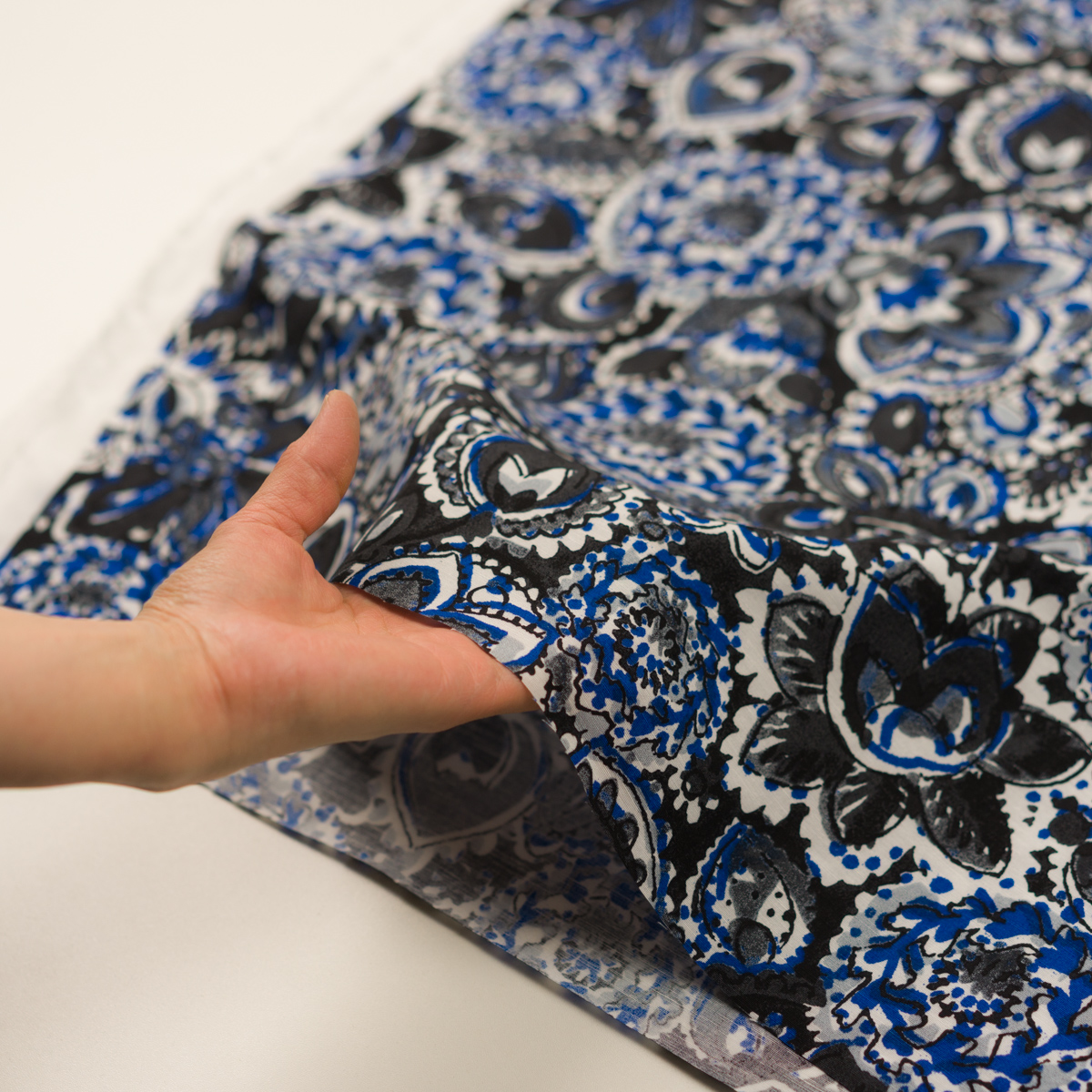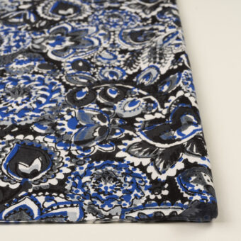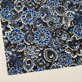 【アウトレット】コットン&レーヨン×ボタニカル(チャコール&ブルー)×ポプリン