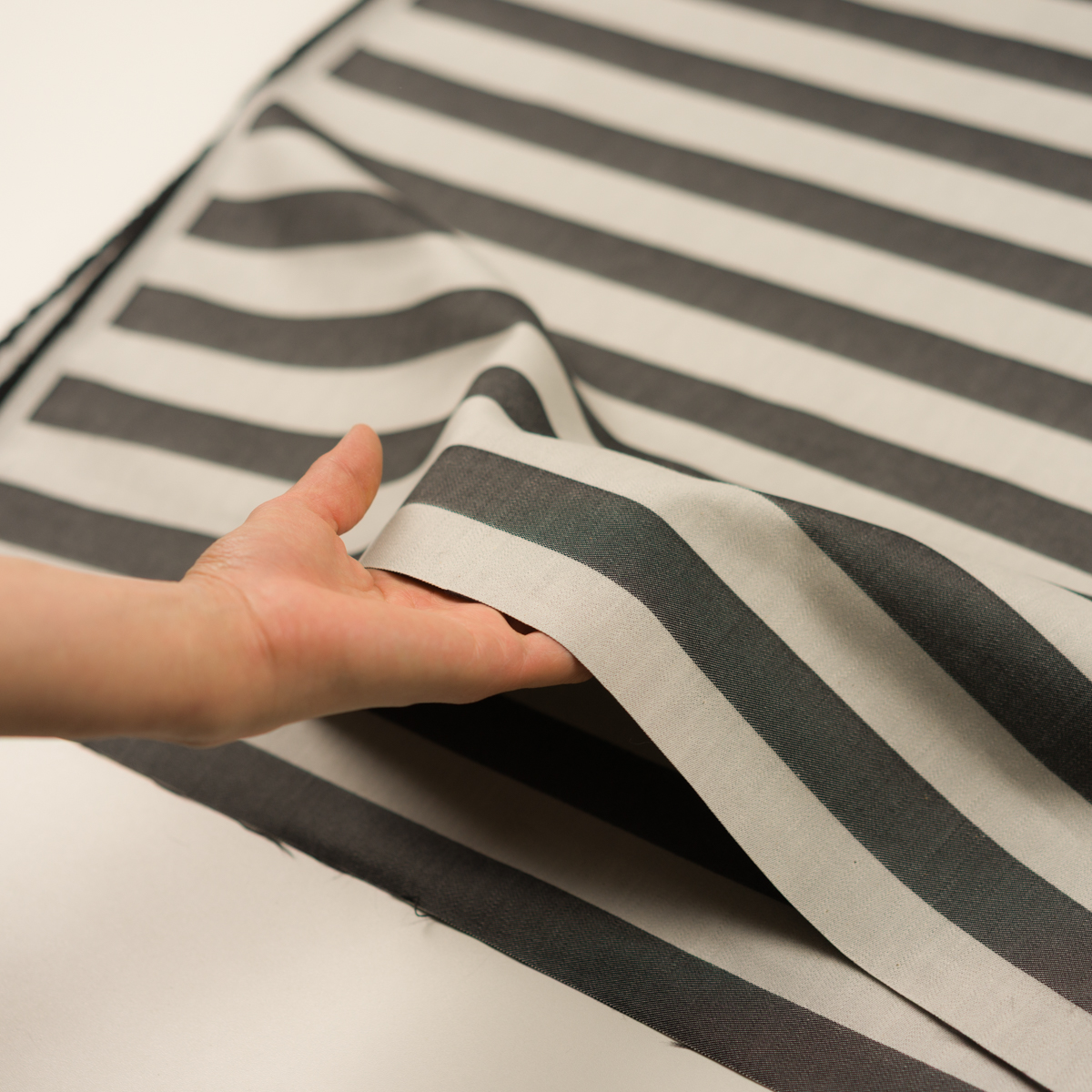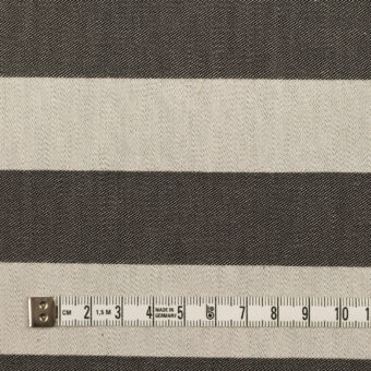 【アウトレット】コットン&ポリエステル×ボーダー(チャコールグレー&オイスター)×二重織