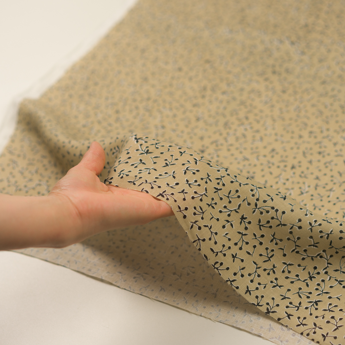 ・薄手のリネンキャンバス地に、ボタニカルプリント