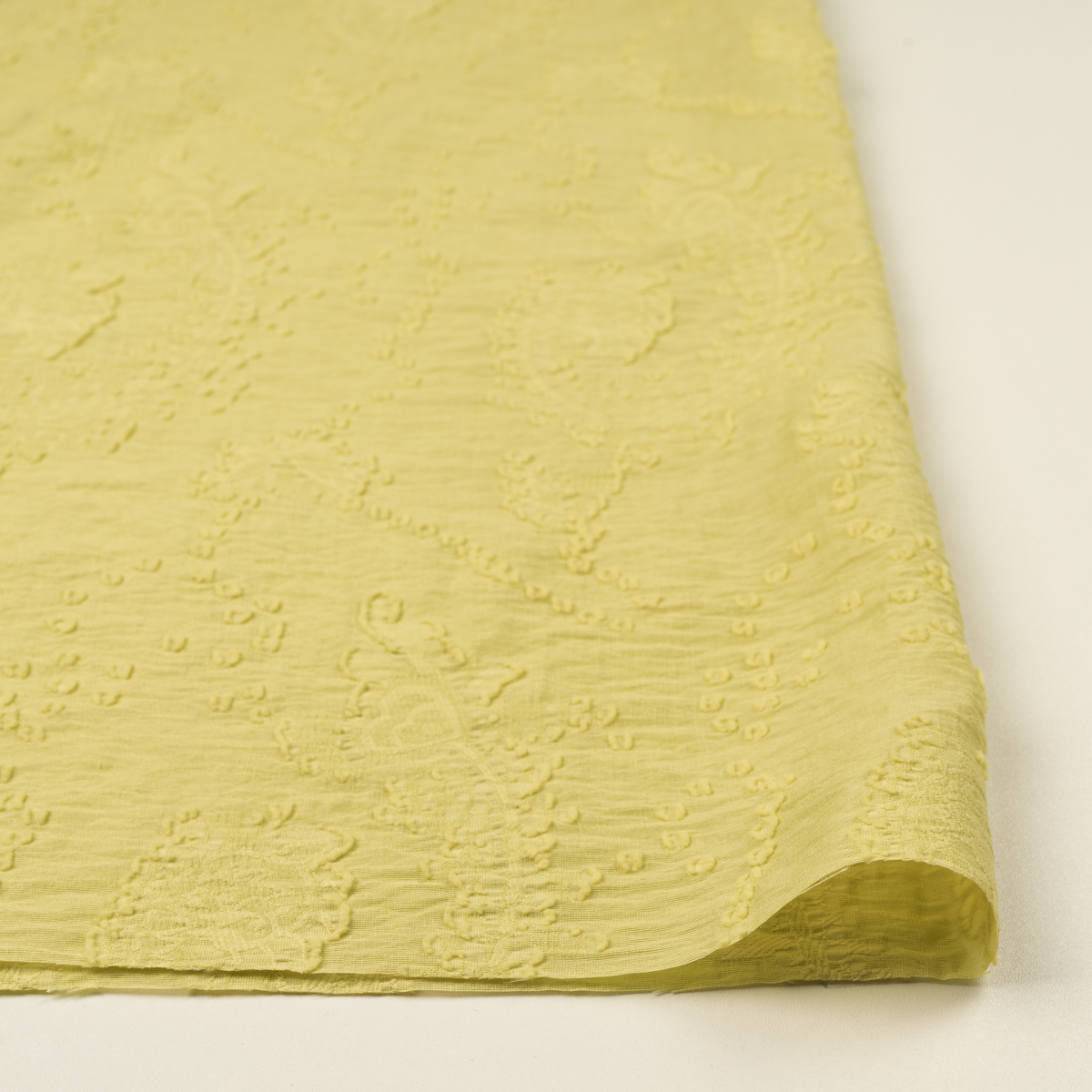 【アウトレット】レーヨン&ポリエステル混×ペイズリー(ライムイエロー)×オーガンジー・カットジャガード