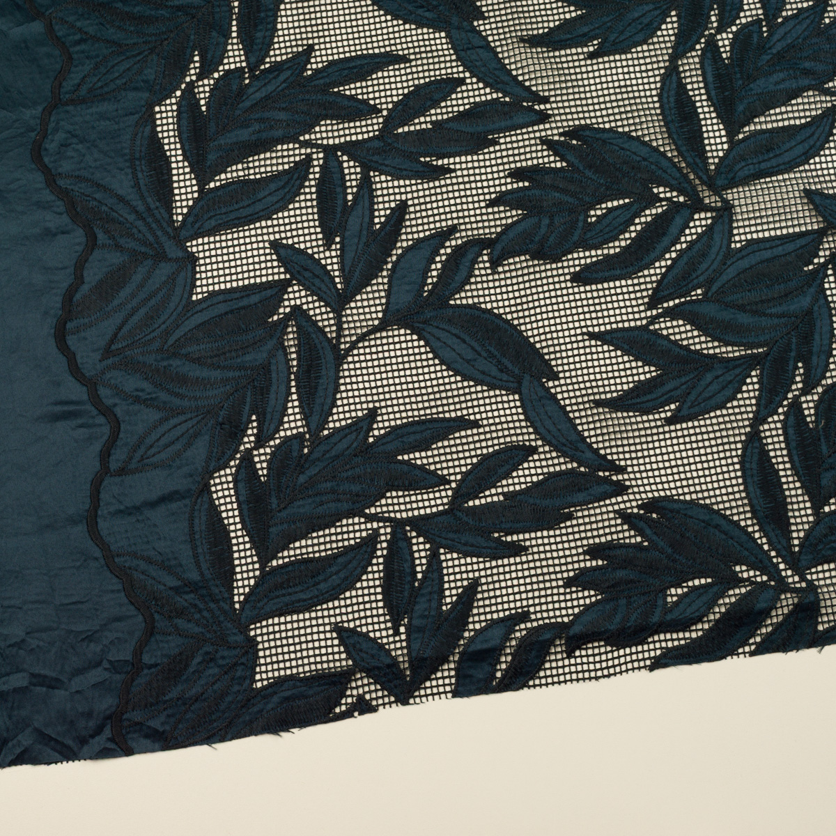 ・スクエアの網目地に、サテンボタニカル刺繍