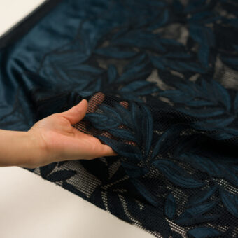 【アウトレット】ポリエステル×ボタニカル(ネイビー)×サテン刺繍
