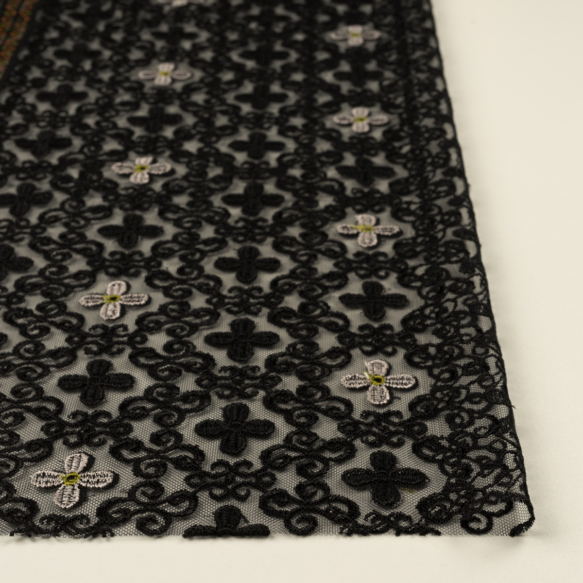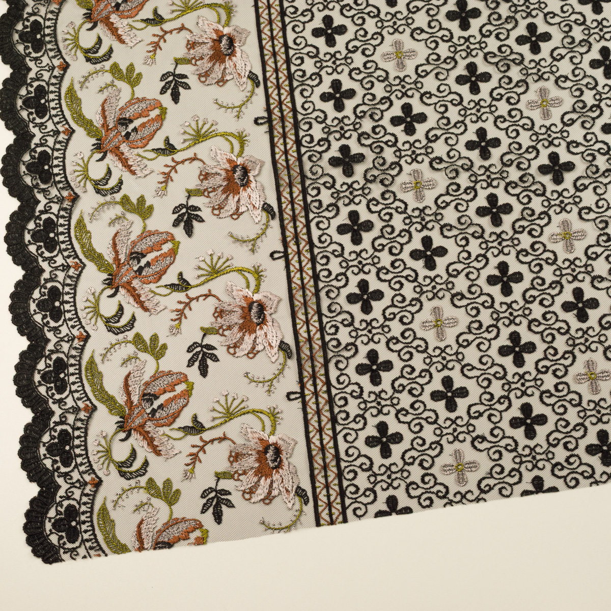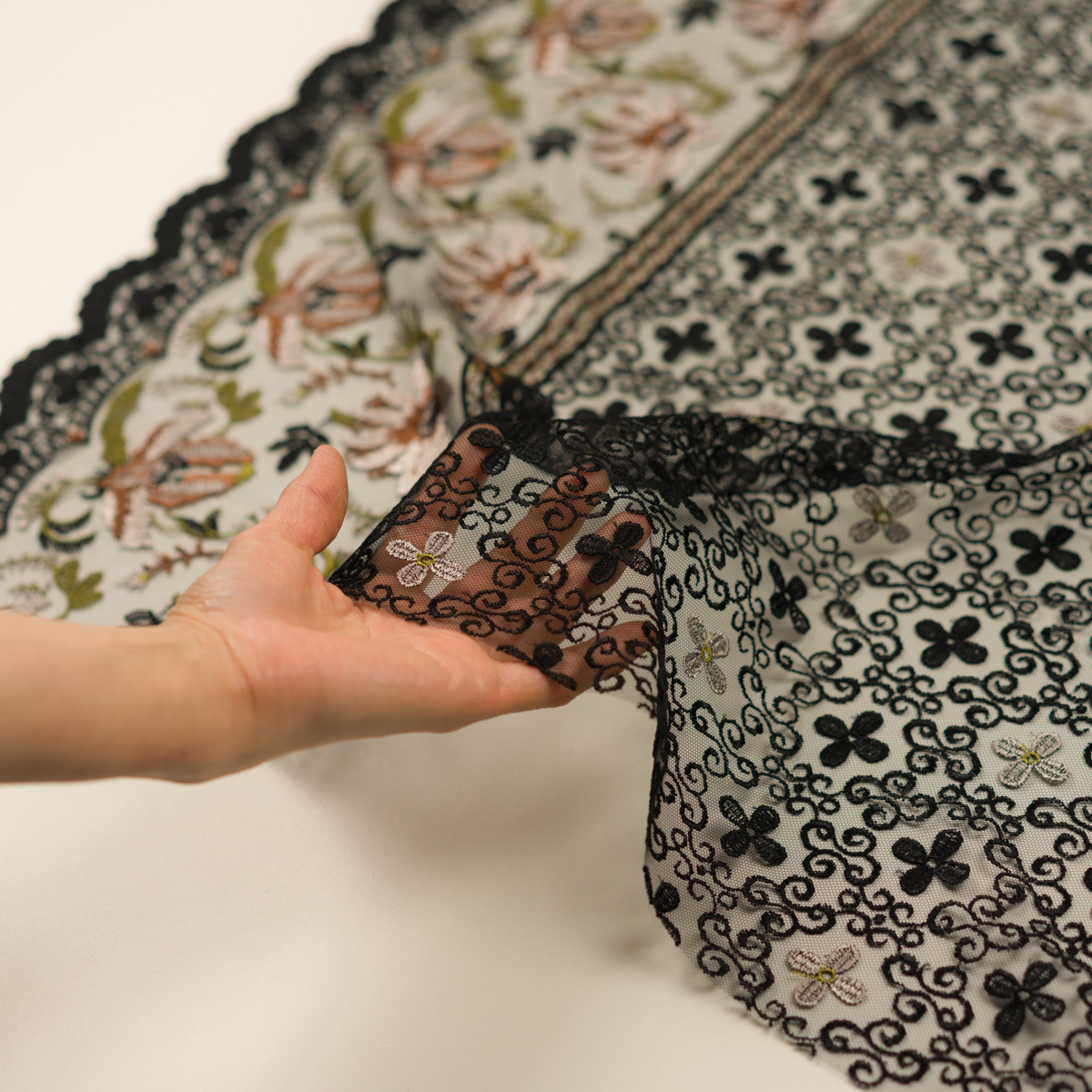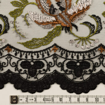 【アウトレット】ナイロン&ポリエステル×フラワー(ブラック、オイスター&ブラウン)×チュール刺繍