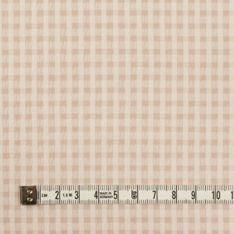 【アウトレット】ポリエステル×チェック(エクリュ&ベージュ)×ドビーストレッチ