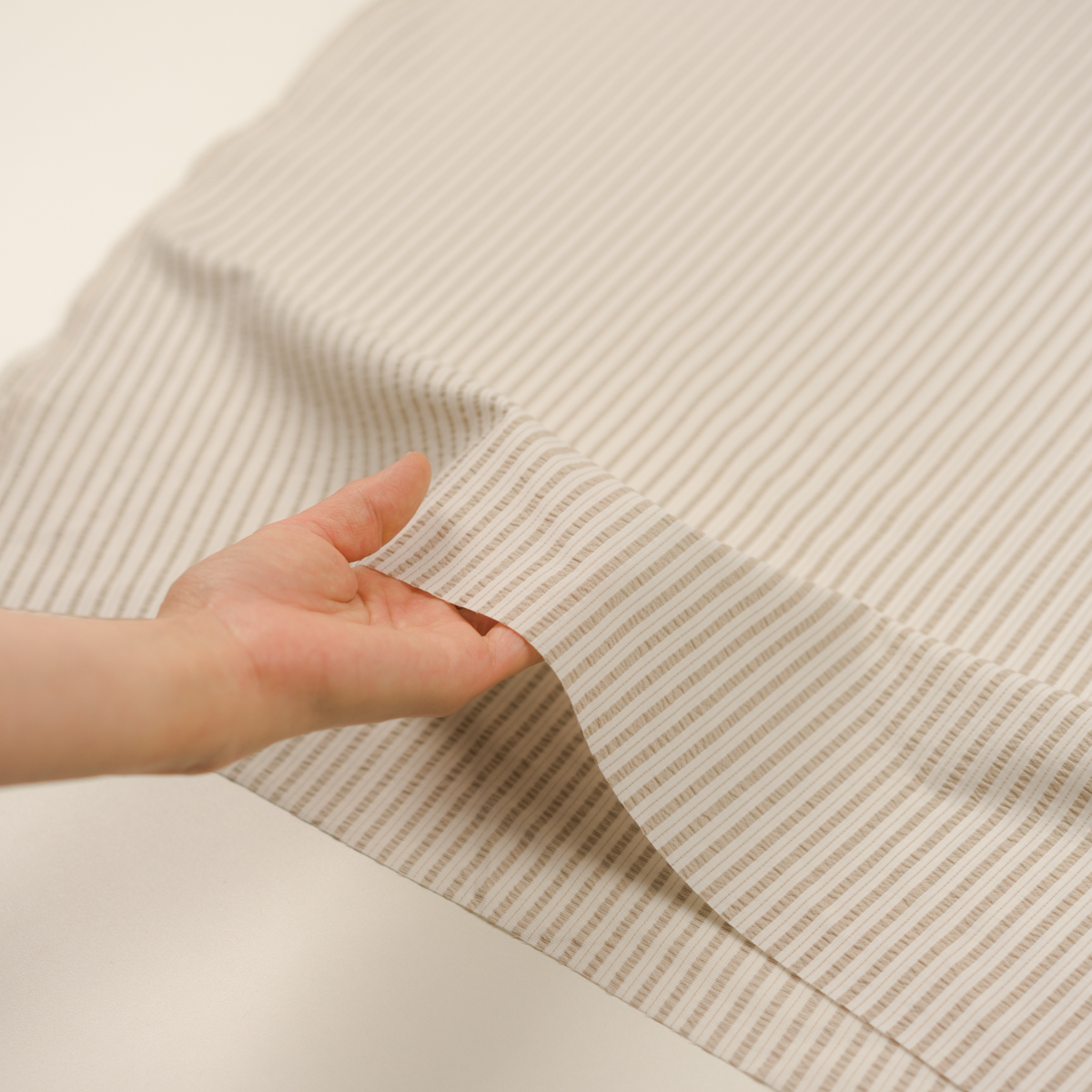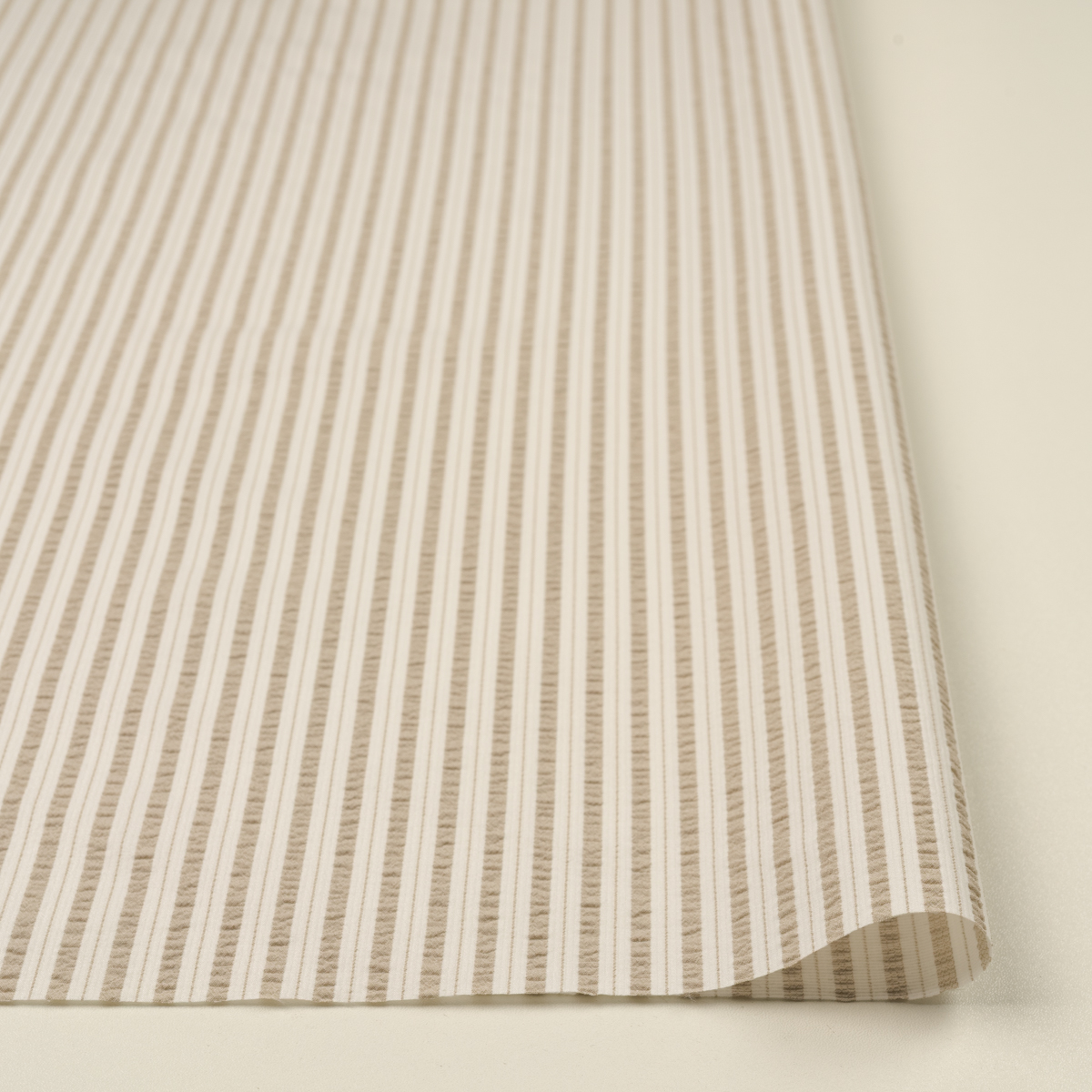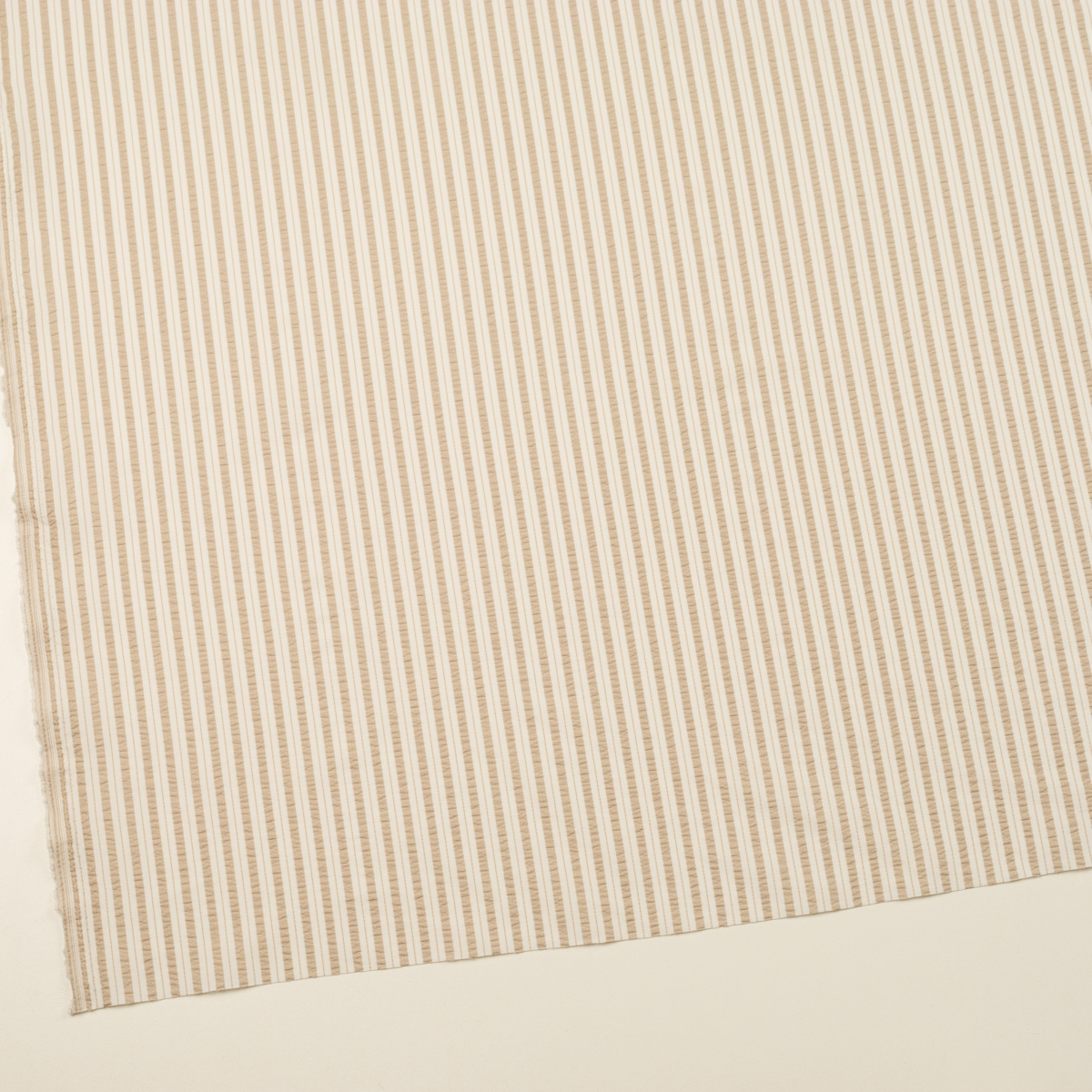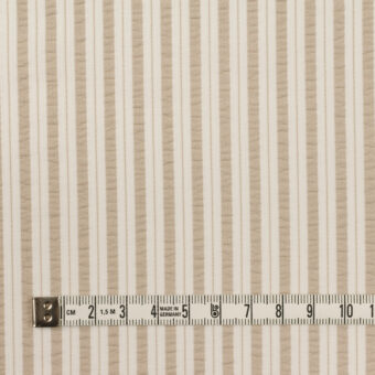 【アウトレット】ポリエステル×ストライプ(グレイッシュベージュ&オフホワイト)×サッカー