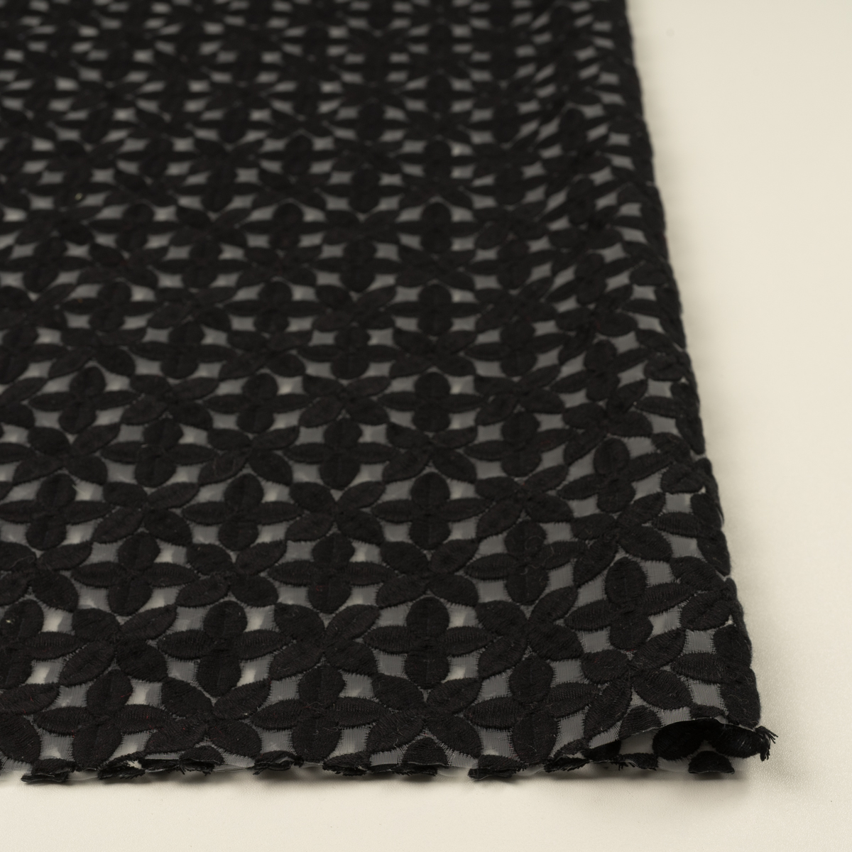 【アウトレット】ナイロン&コットン×フラワー(ブラック&ホワイト)×オーガンジー刺繍