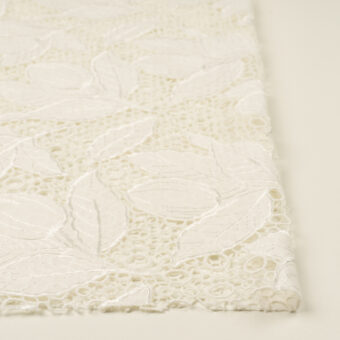 【アウトレット】コットン&レーヨン×ボタニカル(ミルク)×ケミカルレース&ローン刺繍