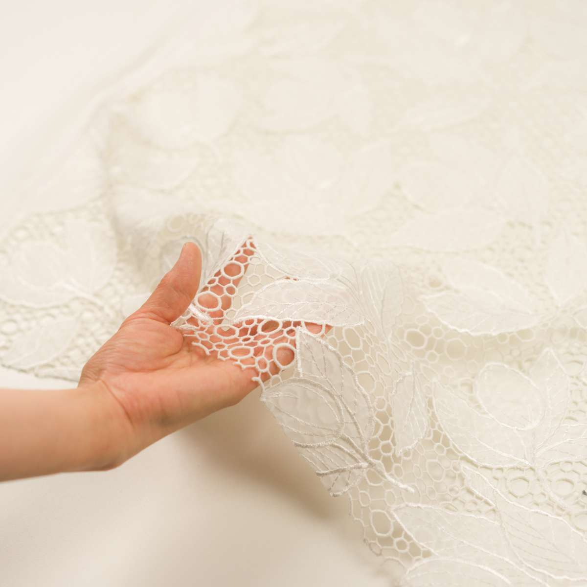 ・サークルケミカルレース地に、ローンボタニカル刺繍