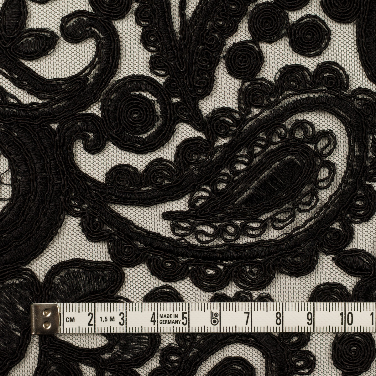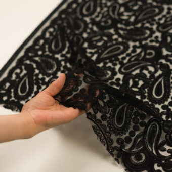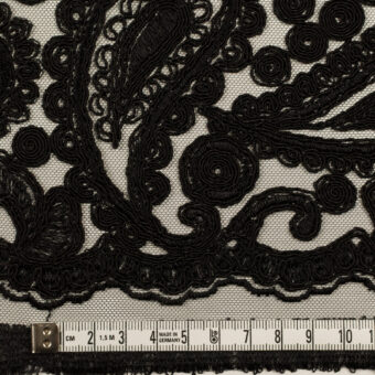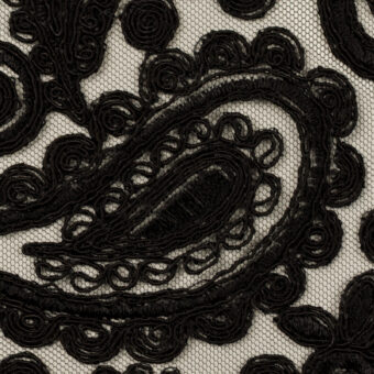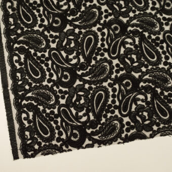 【アウトレット】レーヨン&ポリエステル×ペイズリー(ブラック)×チュール刺繍