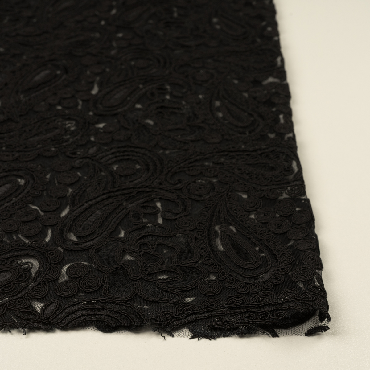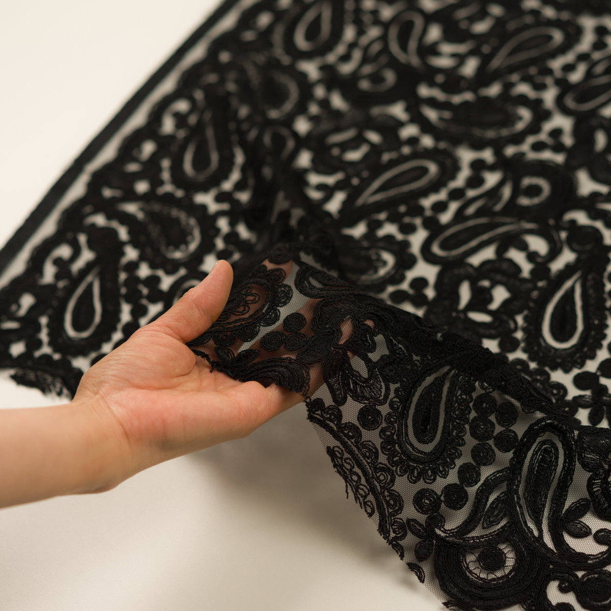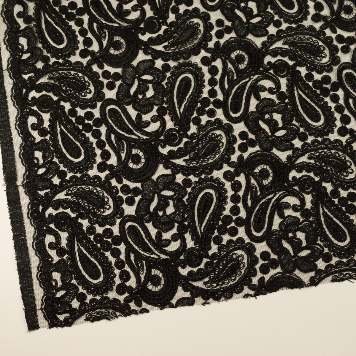 ・網目状のチュール地に、ペイズリー刺繍