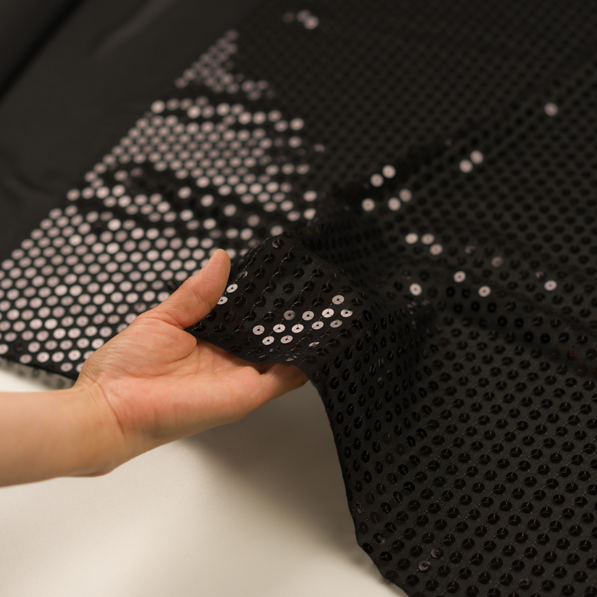 ・きめ細やかなシボのあるジョーゼット地に、直径7mmのスパンコールがぎっしりと連なっています