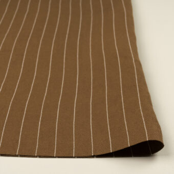 【アウトレット】リネン&コットン×ストライプ(モカブラウン&オフホワイト)×サージ