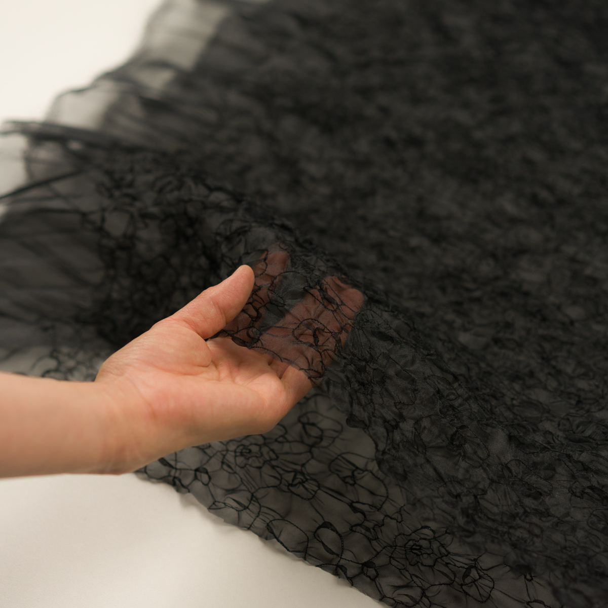 【アウトレット】ポリエステル×フラワー(ブラック)×オーガンジー刺繍