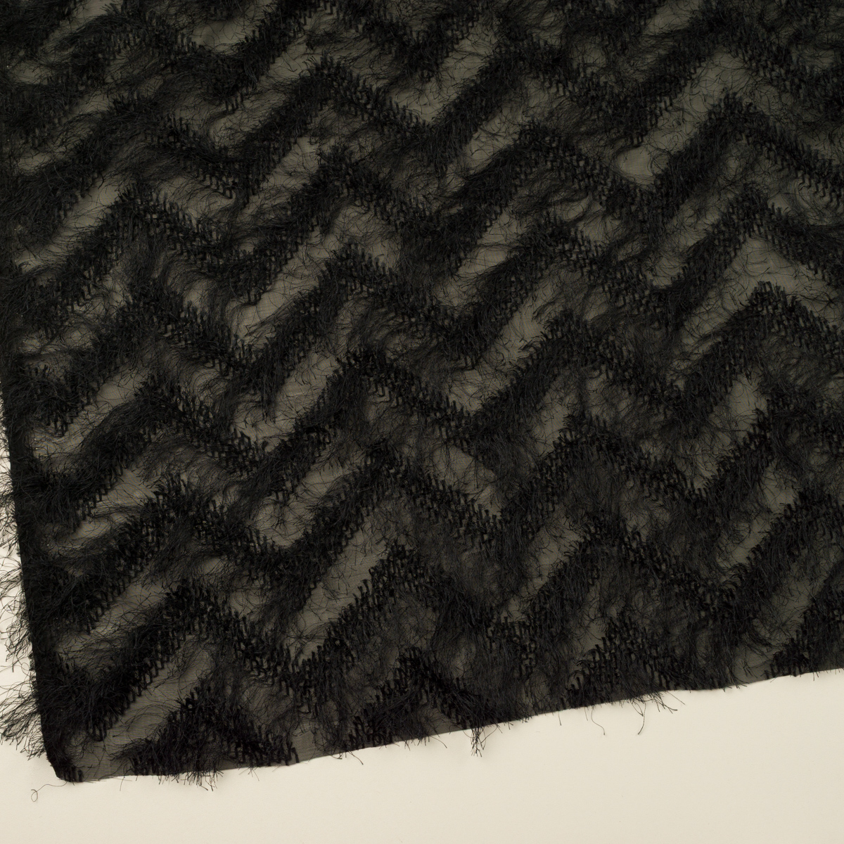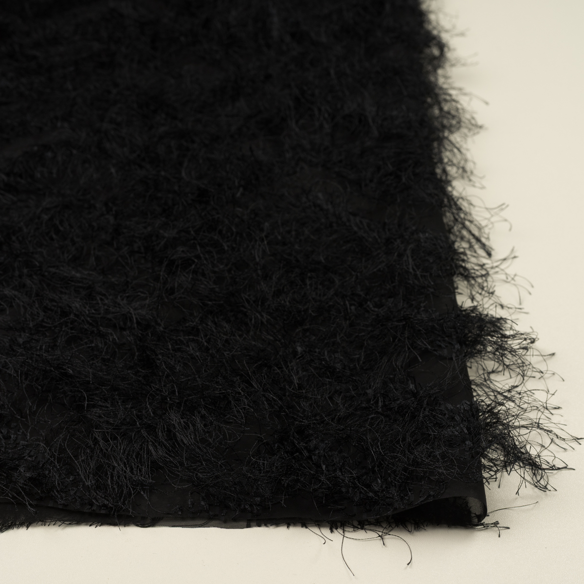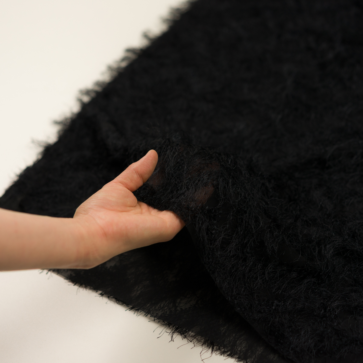 ・薄地で透けのあるシフォン地に、毛足の長いフリンジカットドビー織