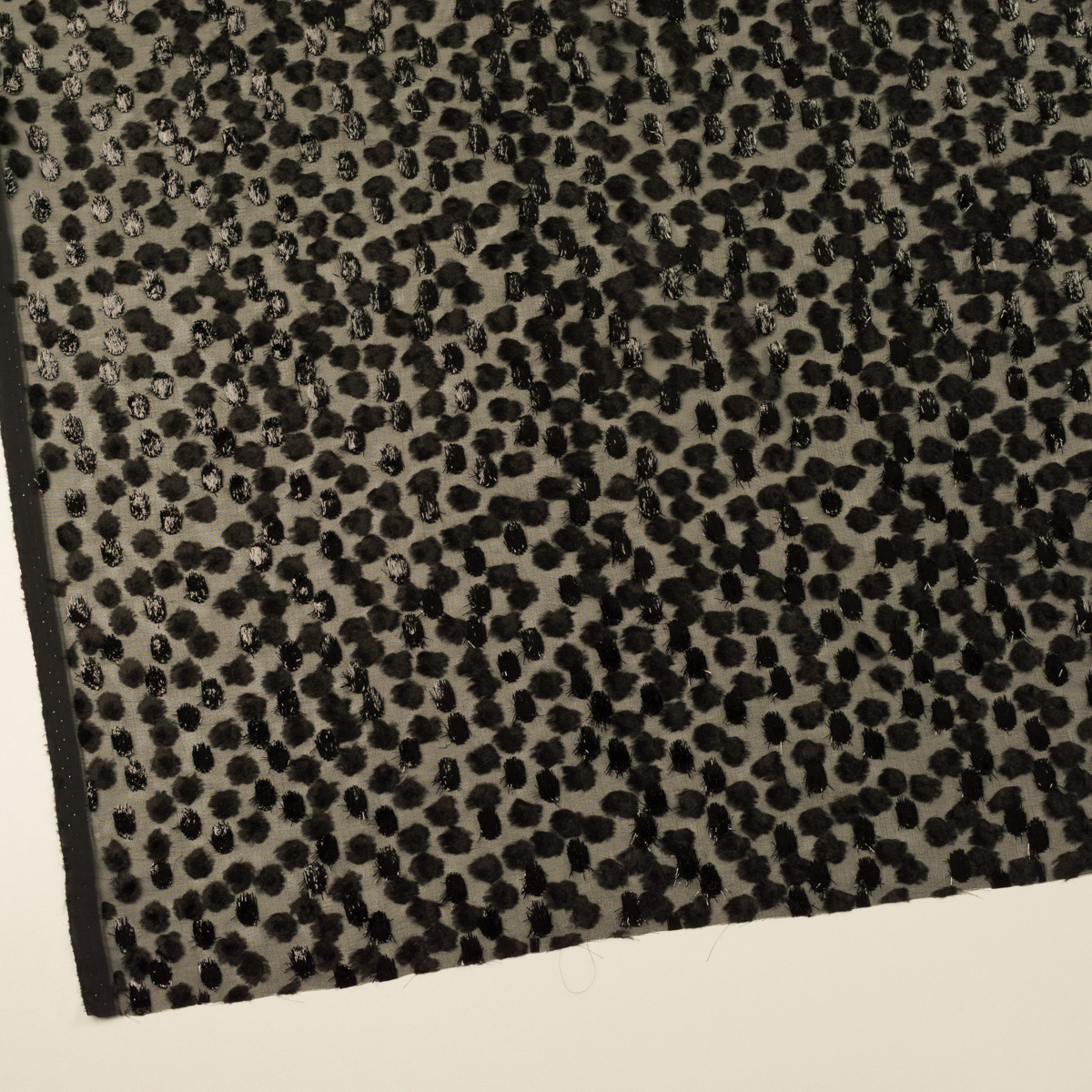 ・薄地で透けのあるシルクシフォン地に、毛足のある2種のカットドビー織